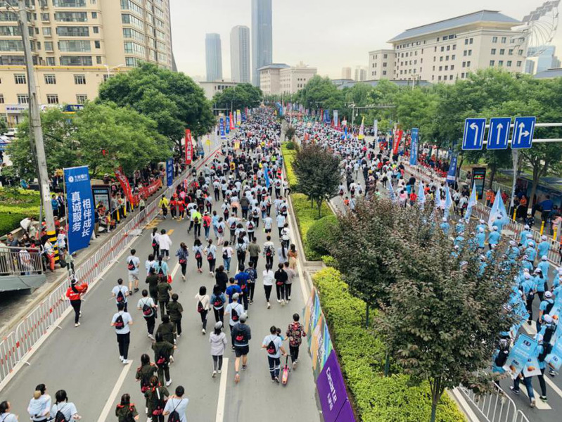 6月2日清晨5点,学院50余名啦啦队志愿者早早组织好队伍,满怀期待前往啦啦队所在驻点。7点30分,2019兰州国际马拉松赛在甘肃国际会展中心鸣枪开跑。在这场全城都在“奔跑”的盛会中,运动员组成的彩色长龙和赛道沿线呐喊的志愿者,为黄河两岸增添了许多色彩。志愿者挥舞着手中的国旗,呐喊“加油”,齐唱《歌唱祖国》、《奔跑》、《我相信》等歌曲,歌声嘹亮,振奋人心。