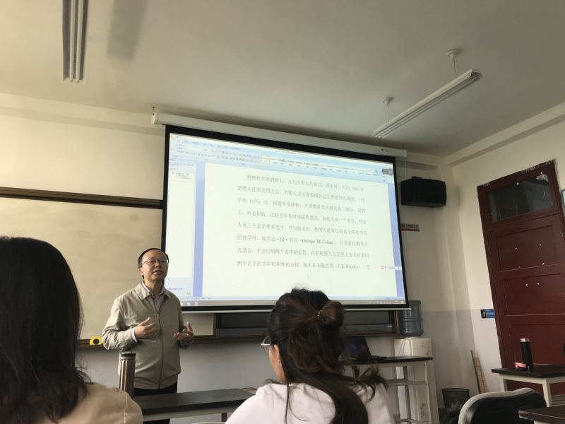 报告会上,张硕博士分别从名称译则、译名方法、人名翻译具体情形及人名翻译注意事项等方面讨论了人名在翻译中如何处理的问题。首先,张硕博士提出了人名翻译的五大原则,即名从主人、约定俗成、避免歧义、性别区分、易记易识,强调了人名翻译的重要性。其次张硕博士讲解了人名翻译的方法,主要包括查询专业书籍、音译、全译、省译等内容,为同学们翻译人名提供了一些思路。最后张硕博士指出人名翻译作为专名翻译的一部分,为了保证读者获取准确无误的信息,在翻译活动中应做到译名的统一性、规范性和稳定性。
