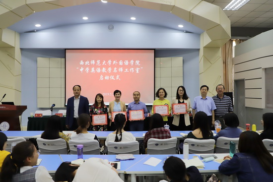 “中学英语教学名师工作室”聘请西北师范大学第一附属中学正高级教师文亚光、西北师范大学第一附属中学高级教师黄友之、兰州市第六十一中学高级教师马玉荣、西北师范大学第二附属中学一级教师杨海丽、兰州市第五十七中学一级教师李霞作为我院兼职教师,旨在让英语专业学生更多地了解中学英语课堂教学的实际状况并学习这些教师在教学中积累的宝贵经验,促进学生的从师技能。