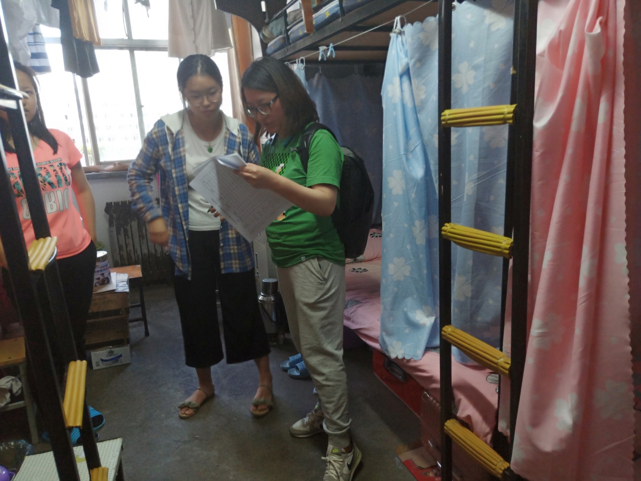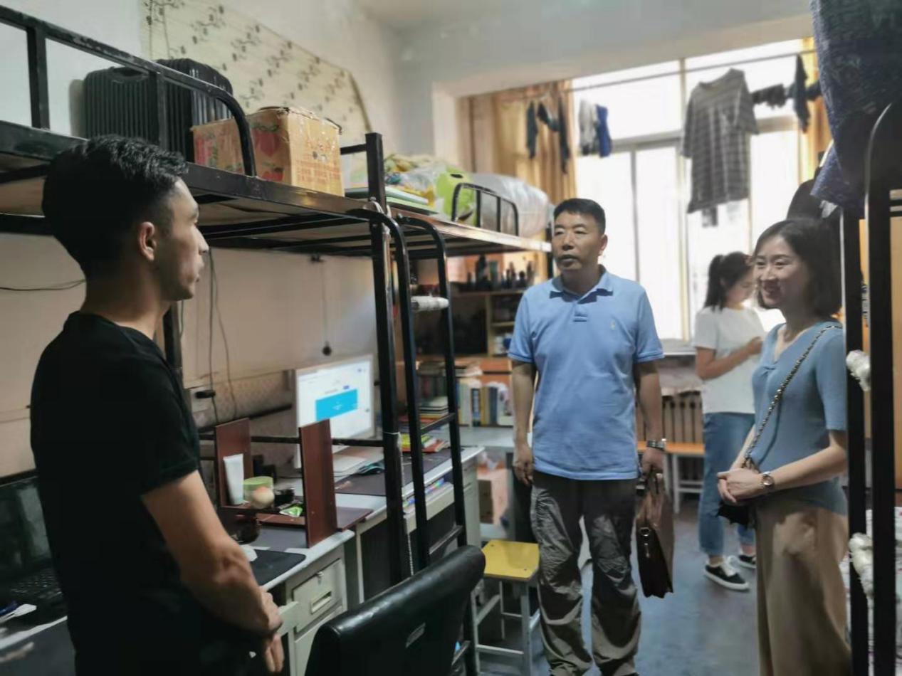 2019年7月9日晚7:30,yl6809永利领导、全体班主任及辅导员走访学生宿舍,关注搬迁宿舍学生情绪,深入排摸学生公寓宿舍设施情况,确保搬迁工作顺利进行。