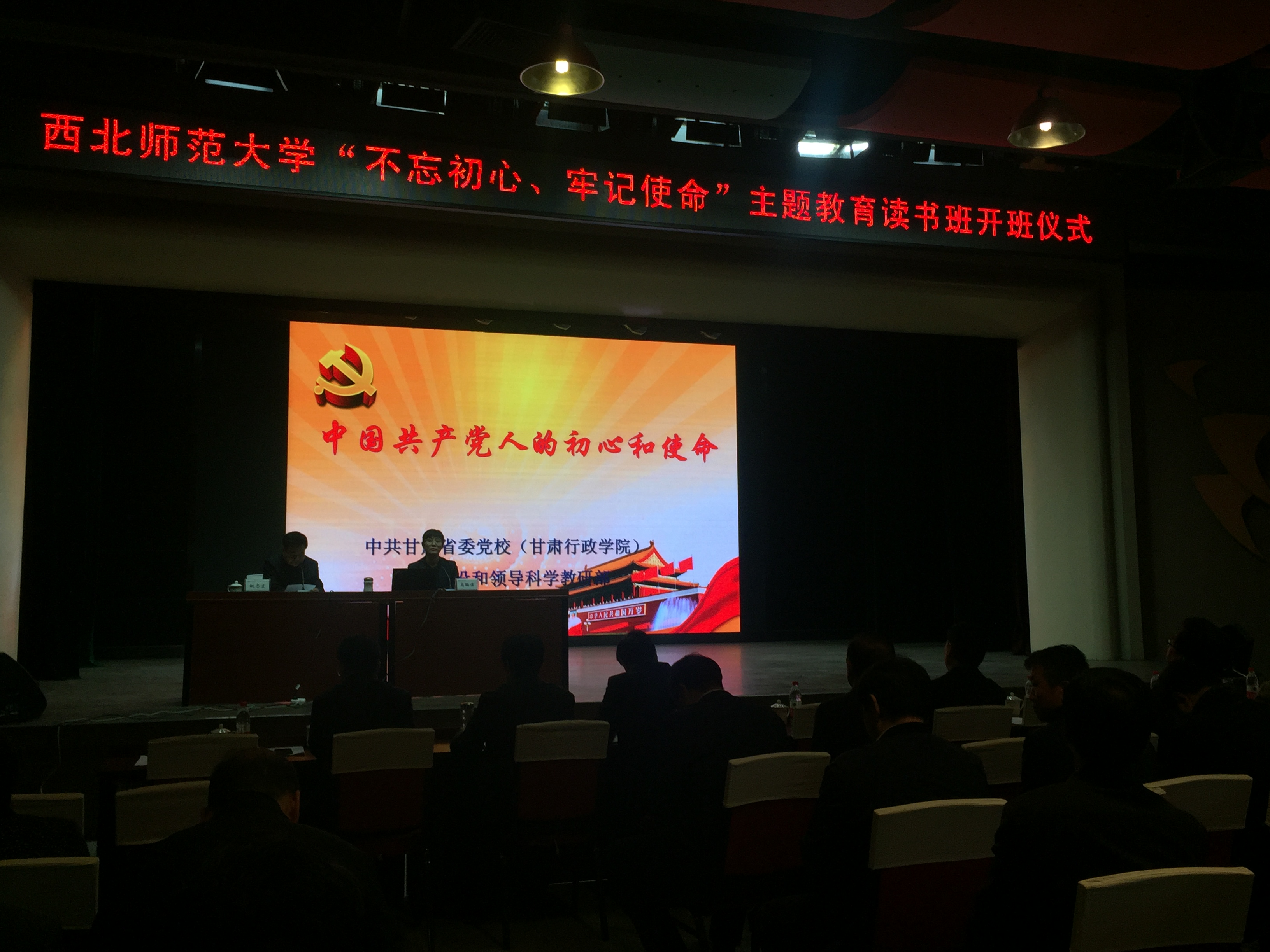 按照学校党委主题教育工作安排,9月23日至27日,利用一周时间,采取领导领学、专家辅导、集中自学、专题研讨、大会交流等形式,举办西北师范大学“不忘初心、牢记使命”处级以上领导干部读书班。yl6809永利主题教育读书班同期开班。