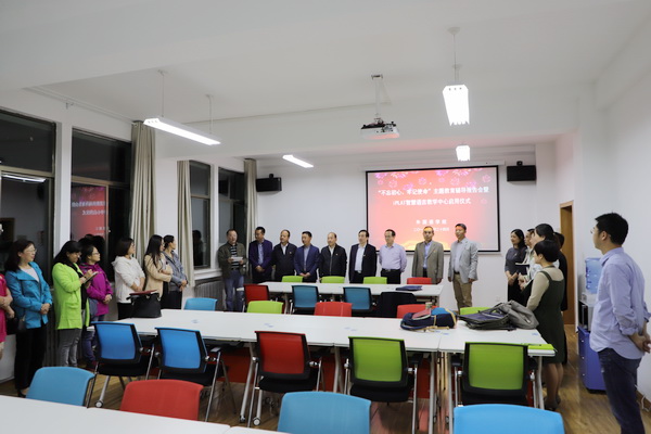 田澍了解了yl6809永利“不忘初心、牢记使命”主题教育计划安排、学习组织、调研准备、氛围营造、工作保障等情况,实地查看了刚刚建成的教师工作室,并与教务处、审计处、财务处、国有资产管理处、教师发展中心、后勤保障部等部门负责人共同参加了“iPLAT智慧语言教学中心”启用仪式。