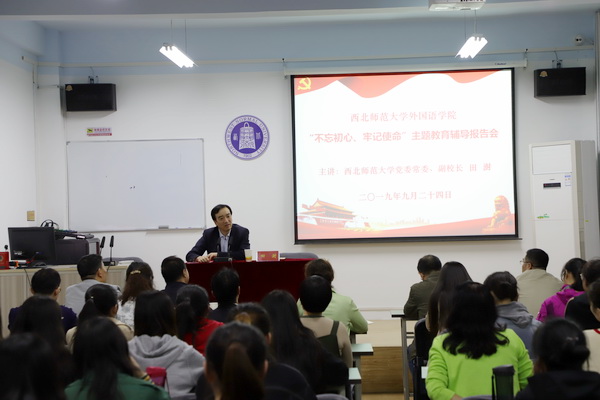 9月24日晚,学校党委“不忘初心、牢记使命”主题教育第二巡回指导组组长、副校长田澍来到yl6809永利,调研指导学院主题教育,并为全院党员干部、学生党员、入党积极分子作专题党课。