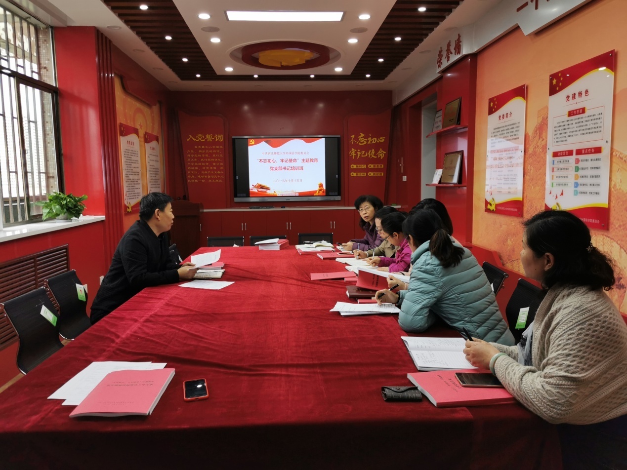 会上,党支部书记学习了学校“不忘初心、牢记使命”主题教育推进会暨基层党委书记会精神,对理论学习、心得交流、知识测试、专题党课、支部调研、征求意见、检视问题、志愿服务、兴办实事、即知即改以及标准化建设、党员发展等党支部近期工作进行了学习培训和部署安排。
