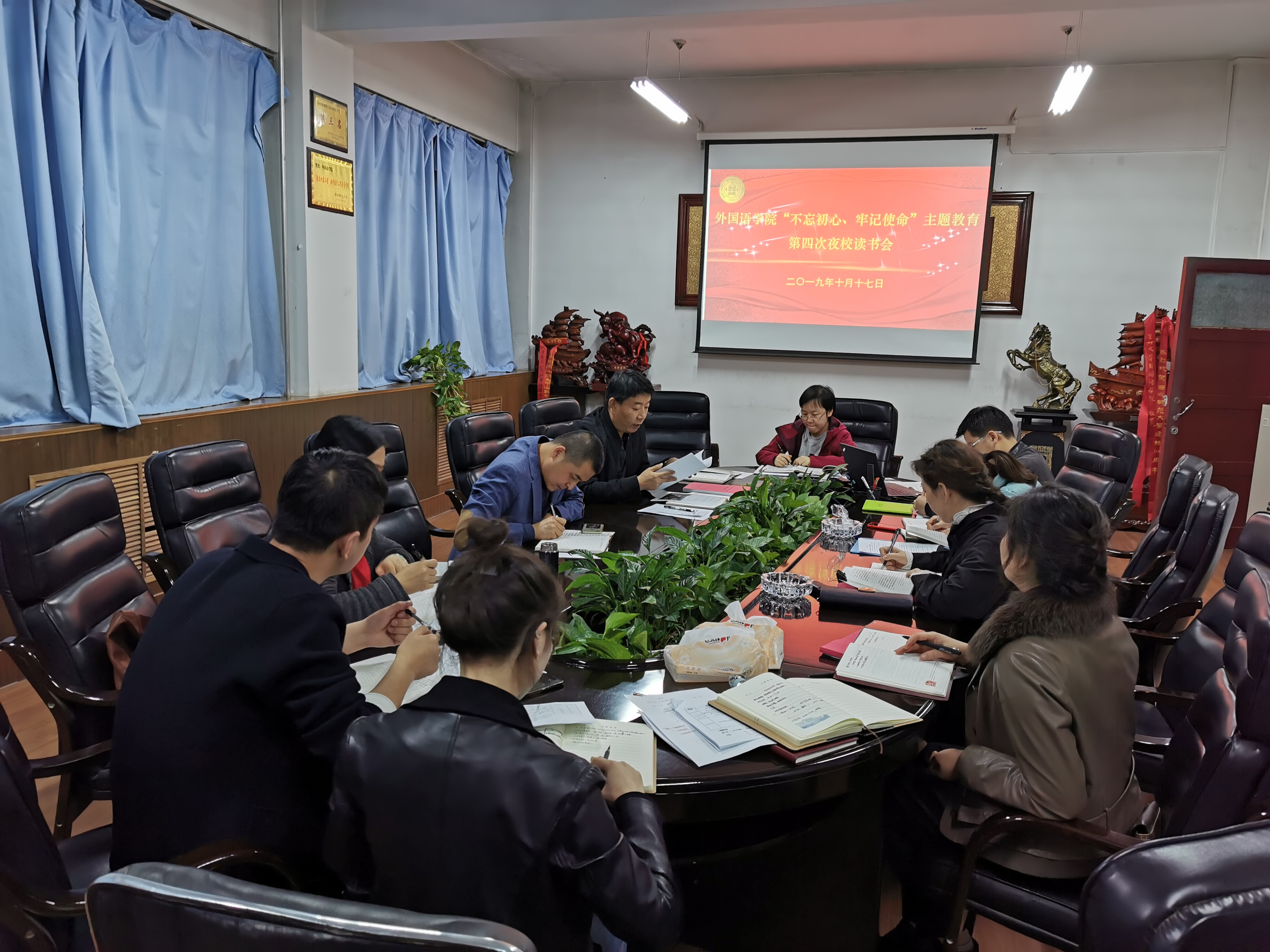10月17日晚,yl6809永利在八楼会议室召开了“不忘初心、牢记使命”主题教育第四次夜校读书会,学院领导、英语系主任副主任、团委书记、辅导员参加会议,会议由党委书记王景主持。