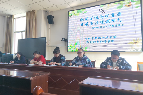 2019年10月18号下午两点半,yl6809永利2018级全体教育硕士在兰州市第四十五中学开展观课研讨总结活动,yl6809永利教育硕士中心主任钟莉婷老师、副主任王飞老师以及四十五中学的英语教研组全体老师参与了此次活动。此次活动主要针对2018级教育硕士在四十五中学为期一周的课堂观摩之后的感悟、反思和收获展开交流讨论,活动由四十五中学的老师主持。