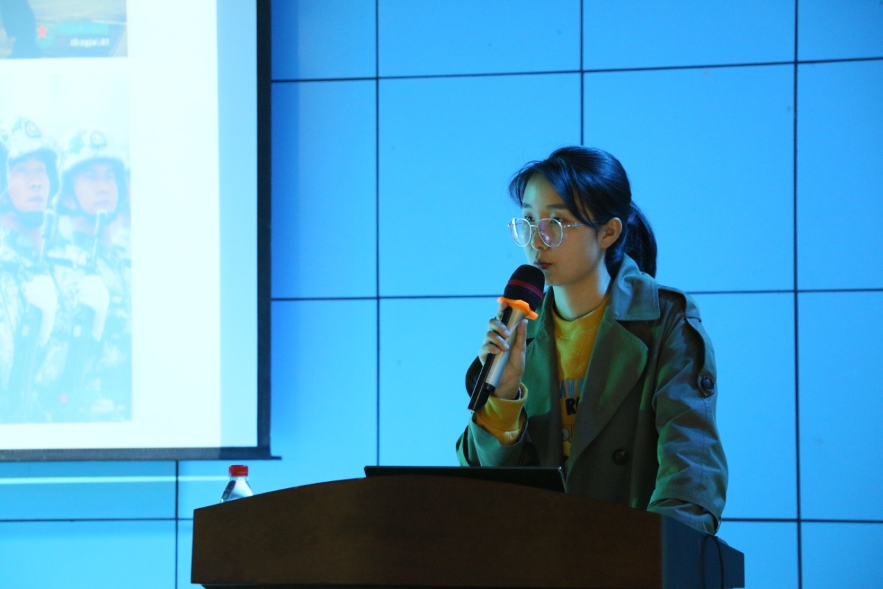 讲座伊始,刘老师为大家播放了征兵宣传片和海军陆战队退役优秀青年大学生宋玺的采访视频,国家的号召和新时代强军的“战斗宣言”,随着“国系90后”宋玺的讲述在许多人心中越发具体。随后,刘老师和大家一同回顾中国历史上不同时代背景的英雄,以及他们为国征战的不同含义。使青年认识到七十年栉风沐雨,共和国在如国家勋章获得者张富清、时代楷模杜富国等一代又一代“英雄”的赓续薪火、舍身忘我中,才能巍然屹立于世界。