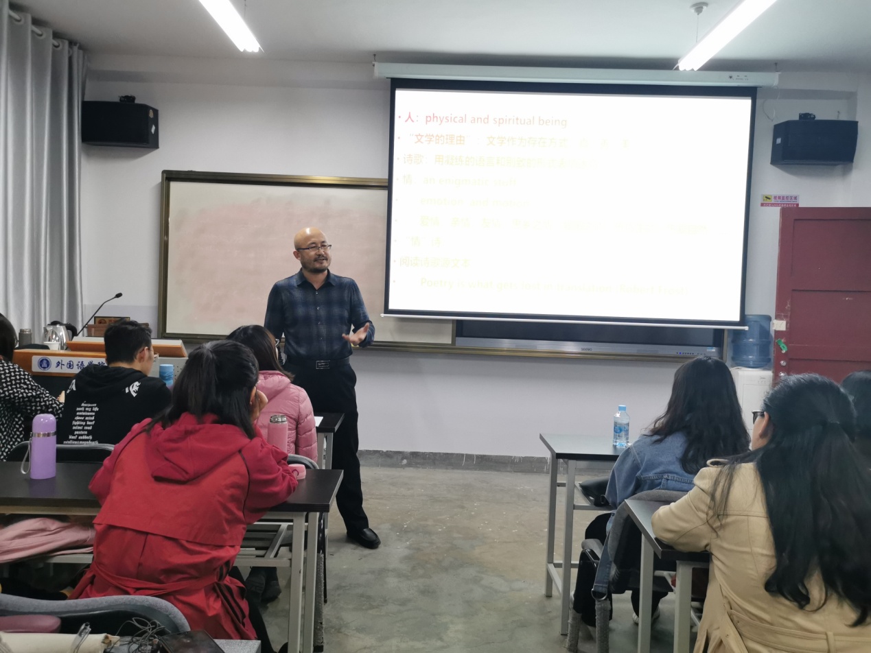 10月24日晚七点半,我院在教学三号楼603室开展第九期yl6809永利益周读书系列读书会。此次读书会我们邀请到了我院张宝林教授,将和同学们一起走近英美“情”诗的丰富意蕴。