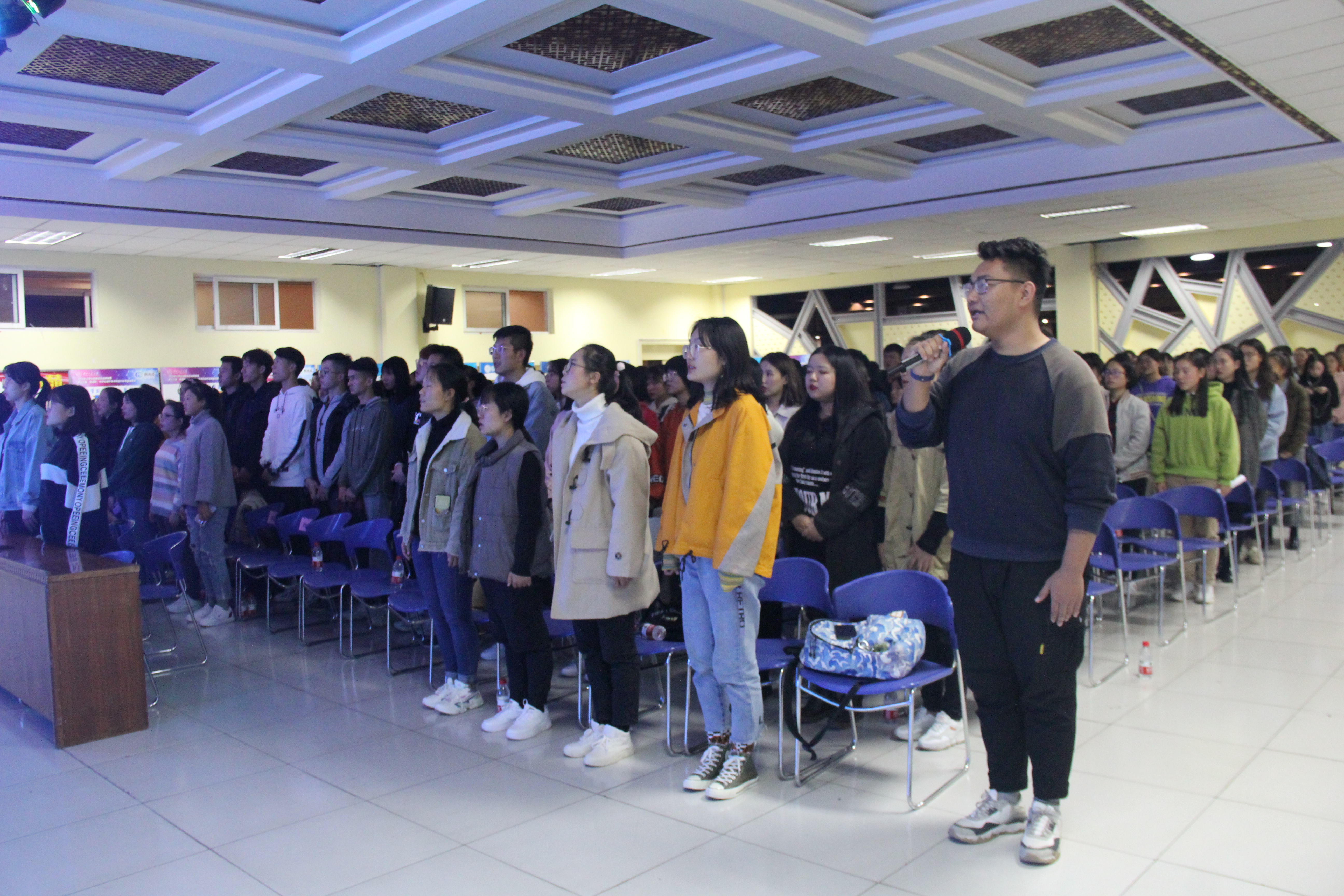 活动伊始,查老师勉励大家,参加志愿活动不仅是帮助他人、更是在锻炼自己,在志愿活动过程中,会接触到许多优秀的人,亦会得到很多意料之外的收获,加入到志愿者的行列中,不让自己的青春留下遗憾。随后,青年志愿者协会负责人分别介绍青年志愿者协会的历史沿革、组织概况以及志愿汇APP的使用指南。在“奉献、友爱、互助、进步”的精神感召下,全体师生共同宣誓,合唱《中国青年志愿者之歌》。
