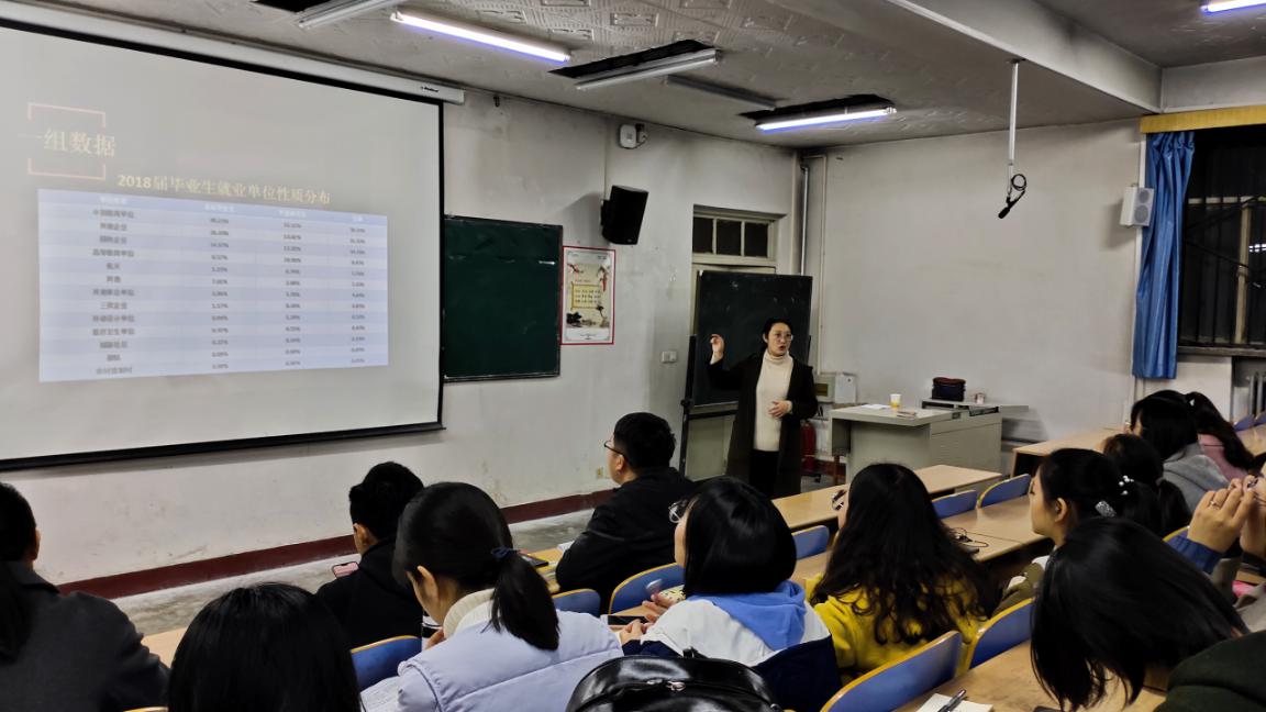随着市场经济供给侧结构性改革步伐加快,就业优先政策归位于宏观政策层面。处暑时节,学校招聘求职季大幕缓缓拉开,各类企事业单位以每天4场的频次更迭,至深秋2019年秋季双选会,用人需求即将达到一个新的高度。为帮助2020届毕业生抢抓就业市场红利,应对求职过程中观念桎梏、行动力缺乏等问题,有效衔接各类用人单位需求。116日晚七点半,我院在电阶201室举行2020届毕业生就业动员大会,本次活动由招生就业处雷春芳老师主讲,辅导员刘心月老师及2020届本科、硕士毕业生150余人参加。