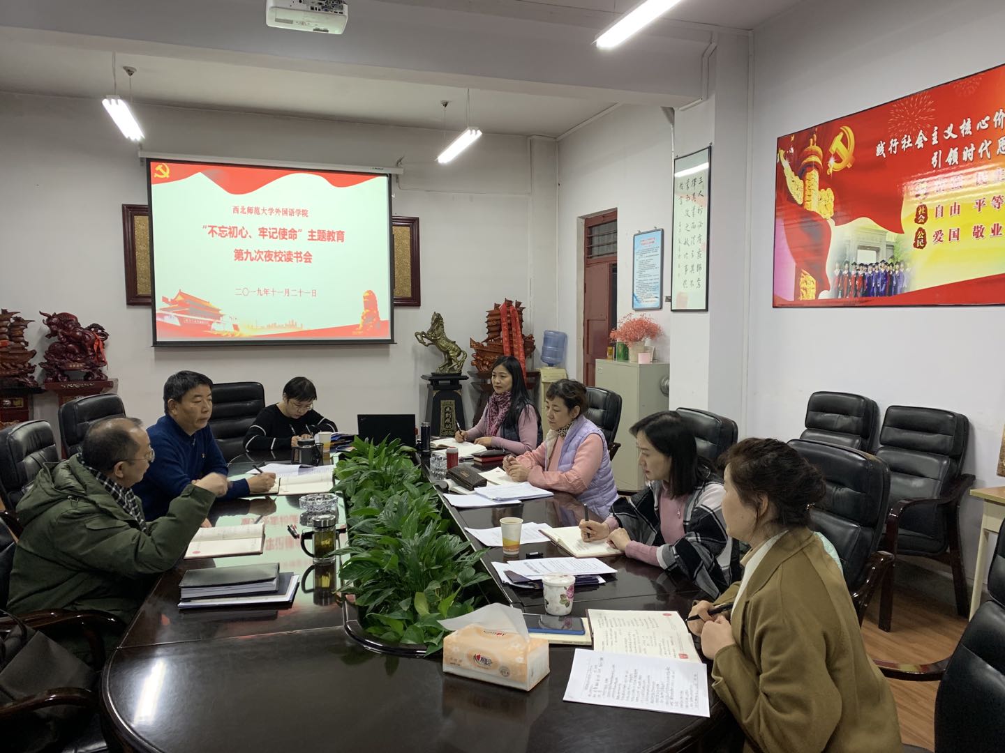11月21日晚,yl6809永利“不忘初心、牢记使命”主题教育第九次夜校学习会在八楼会议室召开,学院党委理论学习中心组成员参加。