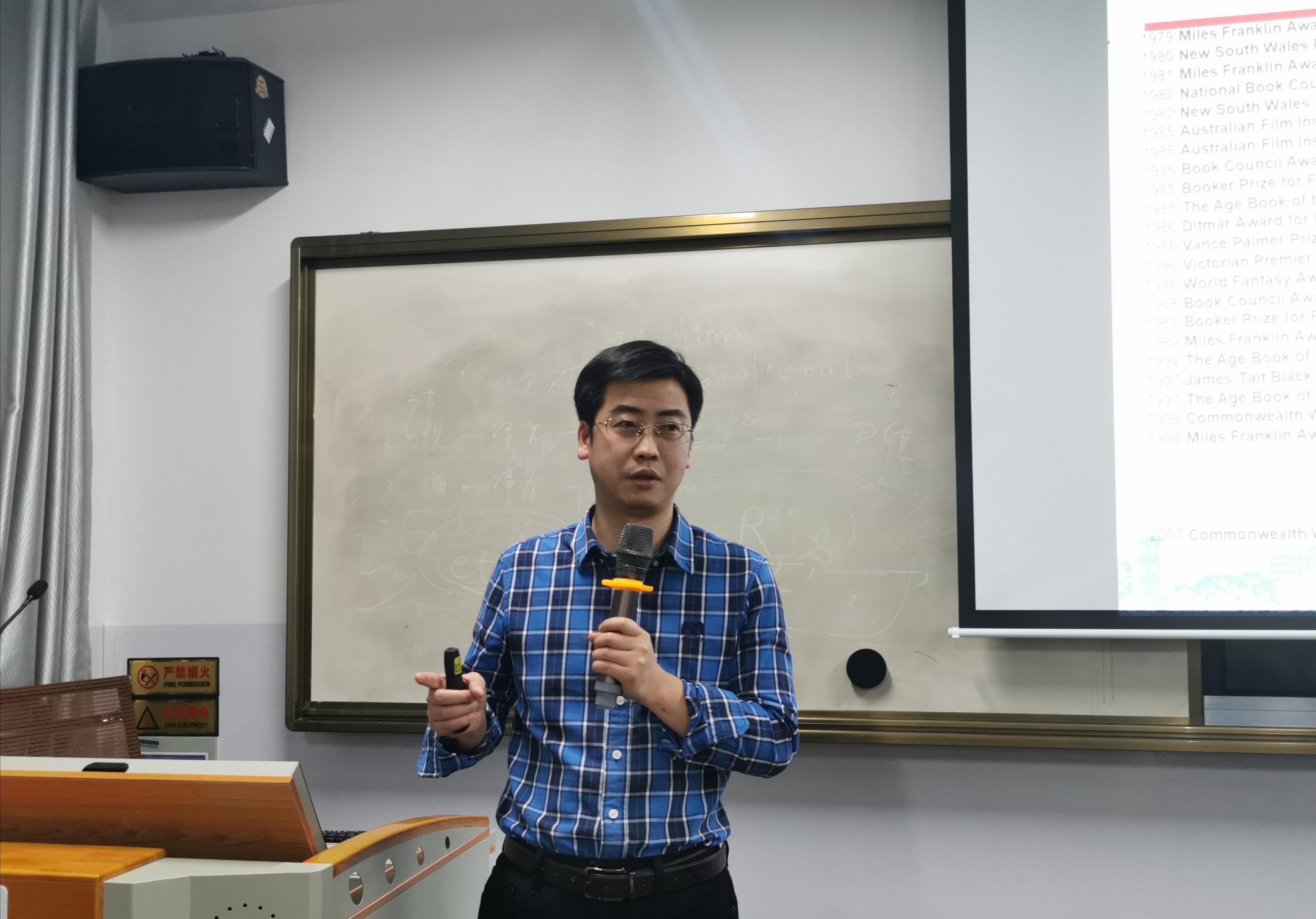 古今中外的英雄侠客冒险传奇几乎是众人最为乐道的故事。在今天的读书会上,杨保林老师与同学们分享了澳大利亚作家彼得·凯里的小说《凯利帮真史》。杨老师从中国经典小说《水浒传》的梁山好汉谈起,述及英国的罗宾汉传奇和《凯利帮真史》里的“凯利帮”。通过对比中西文学中的“侠盗”形象,对内德•凯利在澳大利亚社会经典化和英雄化的复杂进程做了细致的分析讲解。
