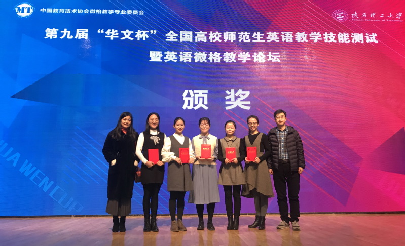 由我院选拔推荐的2016级英语专业本科生胡雅茹、张佳宁、2017级英语专业本科生董子畅、2018级学科教学(英语)研究生毛妍力、刘畅在比赛中成绩优异。在教学技能比赛中,胡雅茹、董子畅、毛妍力获得一等奖,张佳宁、刘畅获得二等奖;在教学设计比赛中,董子畅、刘畅获得一等奖,胡雅茹、毛妍力获得二等奖,张佳宁获得优秀奖。赵辉、王国礼、代莉、杨保林、郭亚文、张桂娟、钟莉婷、黄彩霞、王飞获优秀指导教师奖。