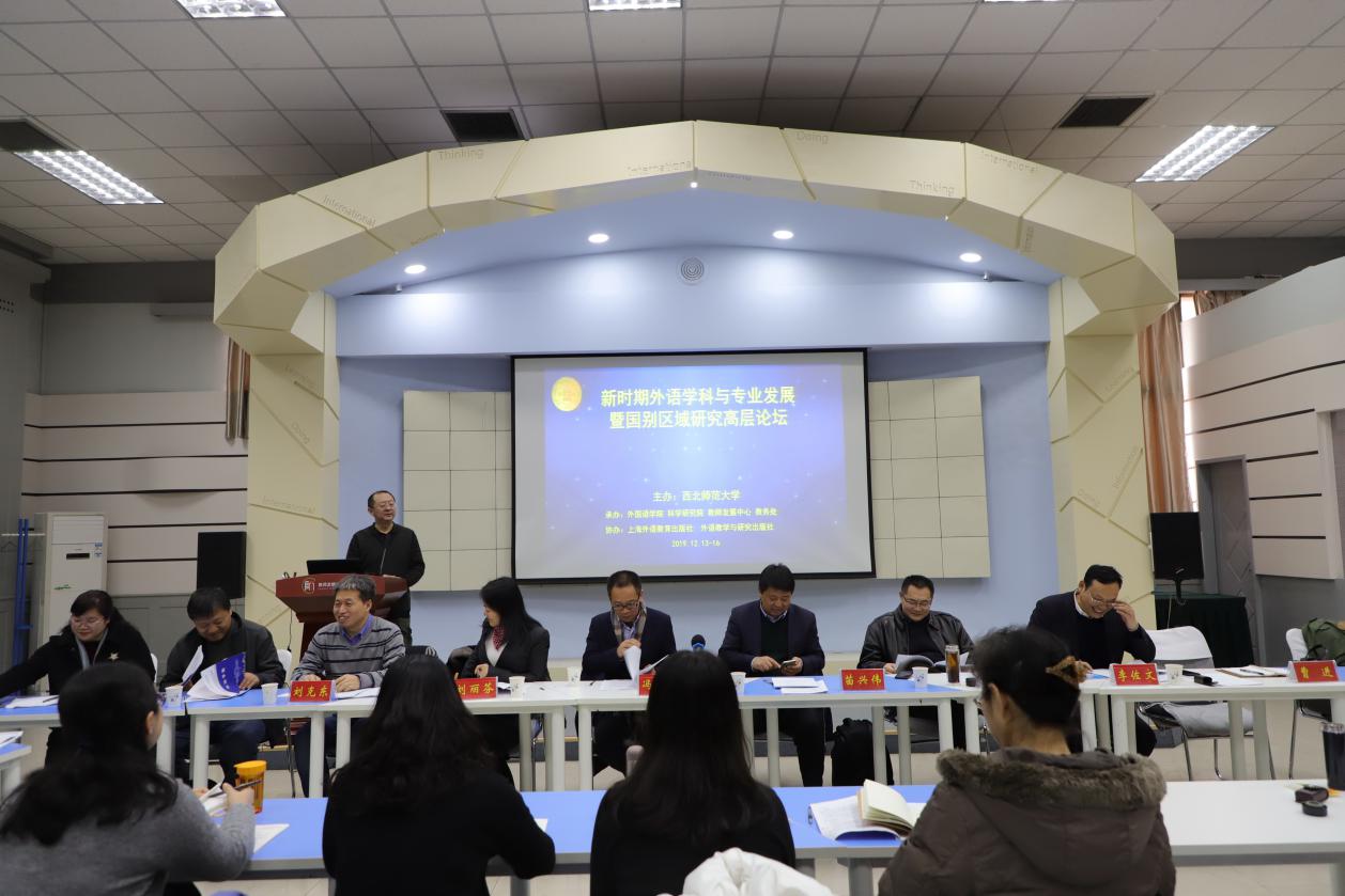 12月14-15日,由西北师范大学主办,yl6809永利、科学研究院、教务处、教师发展中心承办的“新时期外语学科与专业发展暨国别区域研究高层论坛”在兰州隆重召开。来自北京师范大学、北京语言大学、中国传媒大学、广东外语外贸大学等14所高校的知名学者出席本次会议并作主旨报告。西北师范大学副校长董晨钟教授、甘肃省教育厅高等教育处张发旺处长出席开幕式并致辞。