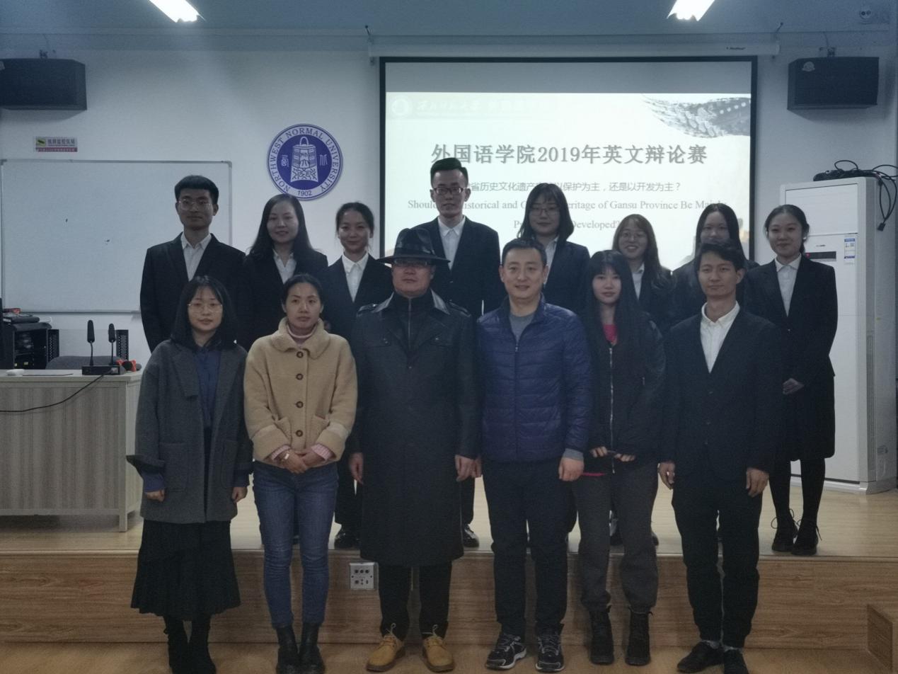 2019年12月11日晚上7点,我院于教学3号楼806教室举办了研究生英语辩论赛总决赛。经过初赛的角逐,两组辩手荣登决赛舞台,就“Should the Historical and Cultural Heritage of Gansu Province Be Mainly Protected or Developed?”这一辩题展开了激烈辩论。此次决赛邀请了曹依民、郭亚文以及赵辉老师担任此次辩论赛评委,2018级口译班马克担任决赛主席,张健和杜玉担任学生评委。