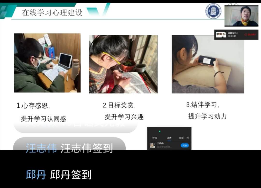 辅导员查秀芳分享到:“只有心理复位,才能愉快复学。同学们要自律、自立、自强,保持积极心态,明确责任担当,厚植家国情怀,培养国际视野,做好心理建设以提高在线学习效果,做好压力管理以提升居家幸福指数。”
