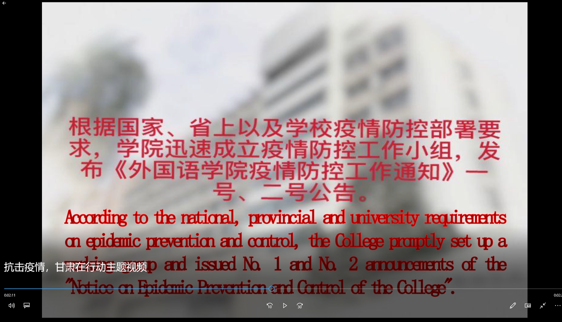 主题二:制作“同心战疫,春暖花开”多语祝福视频。分别用英语、日语、俄语、阿拉伯语、法语录制视频为抗疫加油打气;手持外语战“疫”祝福或海报,拍摄战“疫”祝福照片。展示甘肃高校学子砥砺意志品质、勇于拼搏挑战,心系外国青年友人,与疫情期间身处不同国家的甘肃高校赴外留学生凝心聚力,贡献青春力量的美好愿景。