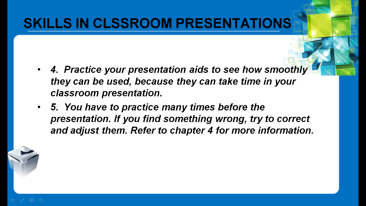 如今的课堂变得越来越高科技,老师们也善用课堂展示来检验同学们的学习效果,但是课堂展示检验的并不只是同学们的学习能力,更是利用计算机展示等迁移技能的掌握。蔡兰珍老师从演讲的概念、演讲技巧的重要性和演讲者应该具备的素质等方面展开导入,引导同学们正确认识演讲、进而在此基础上轻松学习专业演示的众多技巧。精彩的目录解读是整个读书会的精华所在。若以书比人,目录就是整本书的眉目。通过一个人的眉目取其内在精神气质的外露。读书之时通过目录便可以看出一本书的整体内涵。谈及目录中第十章“Classroom Presentation”部分,蔡老师结合同学们在课堂演示中遇到的一些问题,更为详细的阐述了如何巧妙利用多媒体媒介等演示技巧,掌握得当合理的演示策略进行精彩的课堂演示。