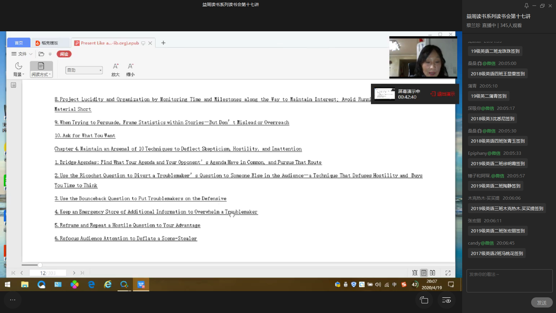 春和景明的四月,春暖花已开,云端学正酣。2020年4月19日晚七点半,益周读书会第十七讲如期赴约,见屏如面。