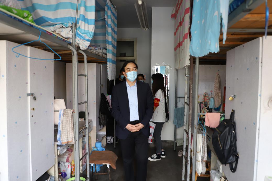 2020年5月15日,副校长田澍在学院领导陪同下深入学生公寓,走访慰问我院首批返校学生。