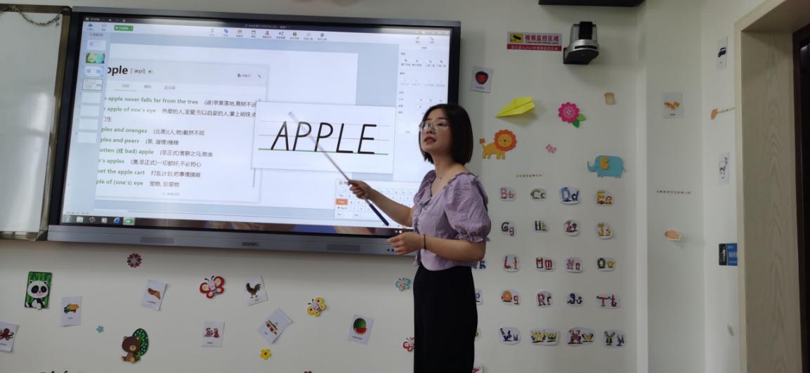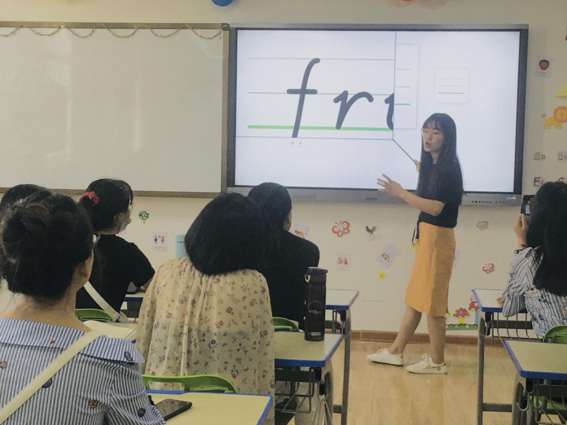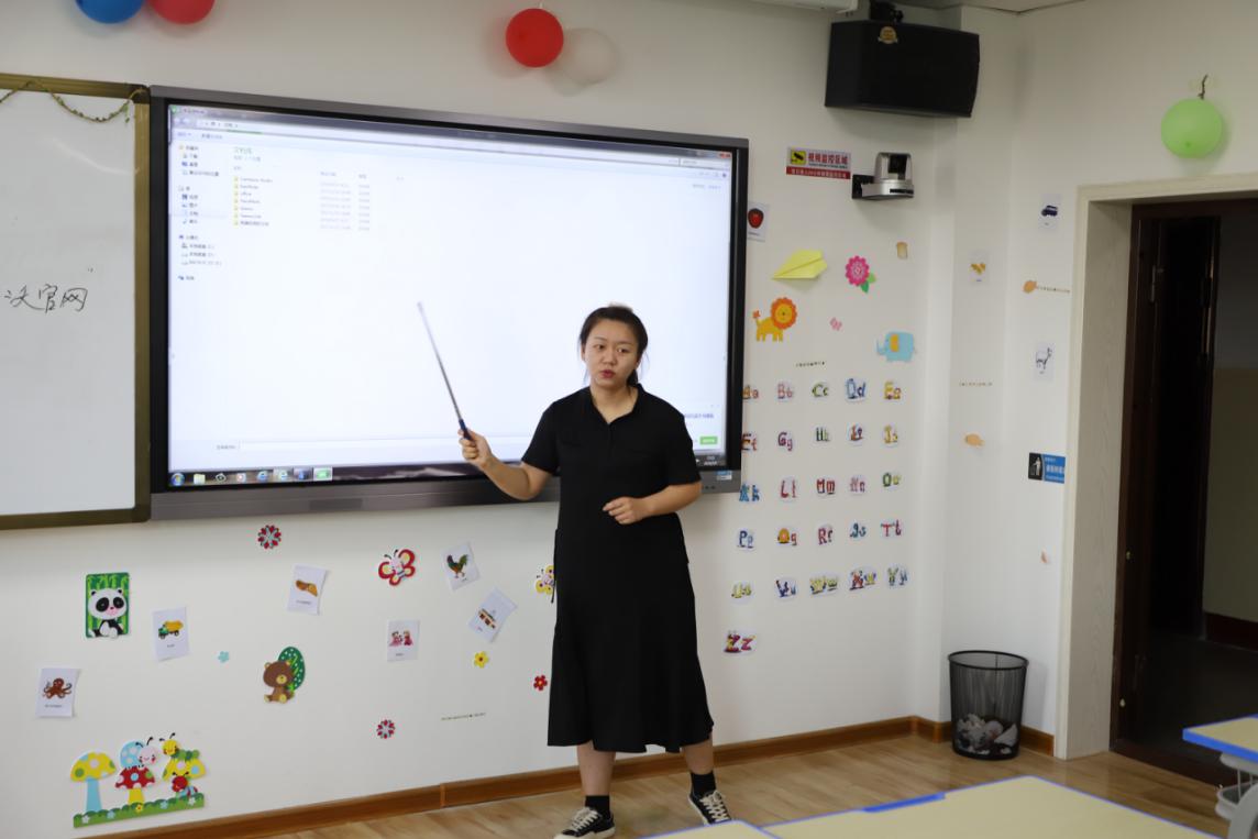 希沃白板是一款针对信息化教学而设计的互动教学平台。以生成式教学理念为核心,为老师提供云课件、学科工具、教学资源等备授课功能。培训过程中,刘畅、何兰丹、程小雨,石佳、吕少静、高雪等六位同学结合自己的使用体验,从技术要领、教学互动、功能概览等方面进行了清晰而生动的讲解示范和实操指导,使同学们对于希沃白板在中小学英语教学中的具体应用技巧有了全面直观的认知。
