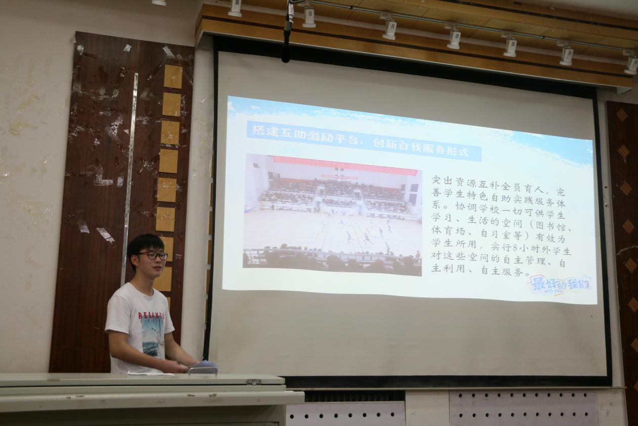 崔泽欣同学以学生“自我管理、自我服务、自我教育、自我监督”为主题进行讲解。针对2020级新生进入大学后的“角色转变不适应、生活习惯不适应、人际交往不适应、管理模式不适应、学习方式不适应”的实际现状,通过结合学院团学工作实际,教育引导新生实现“生活自理、学习自主、行为自律、人格自尊”,进而推动学生工作“由管理学生向发展学生转变、由事务管理型向指导服务型转变、由以教师(辅导员)管理为主向以学生自主管理为主转变、由道德说教模式向实践体悟模式转变、由封闭式教育向开放式教育转变”。