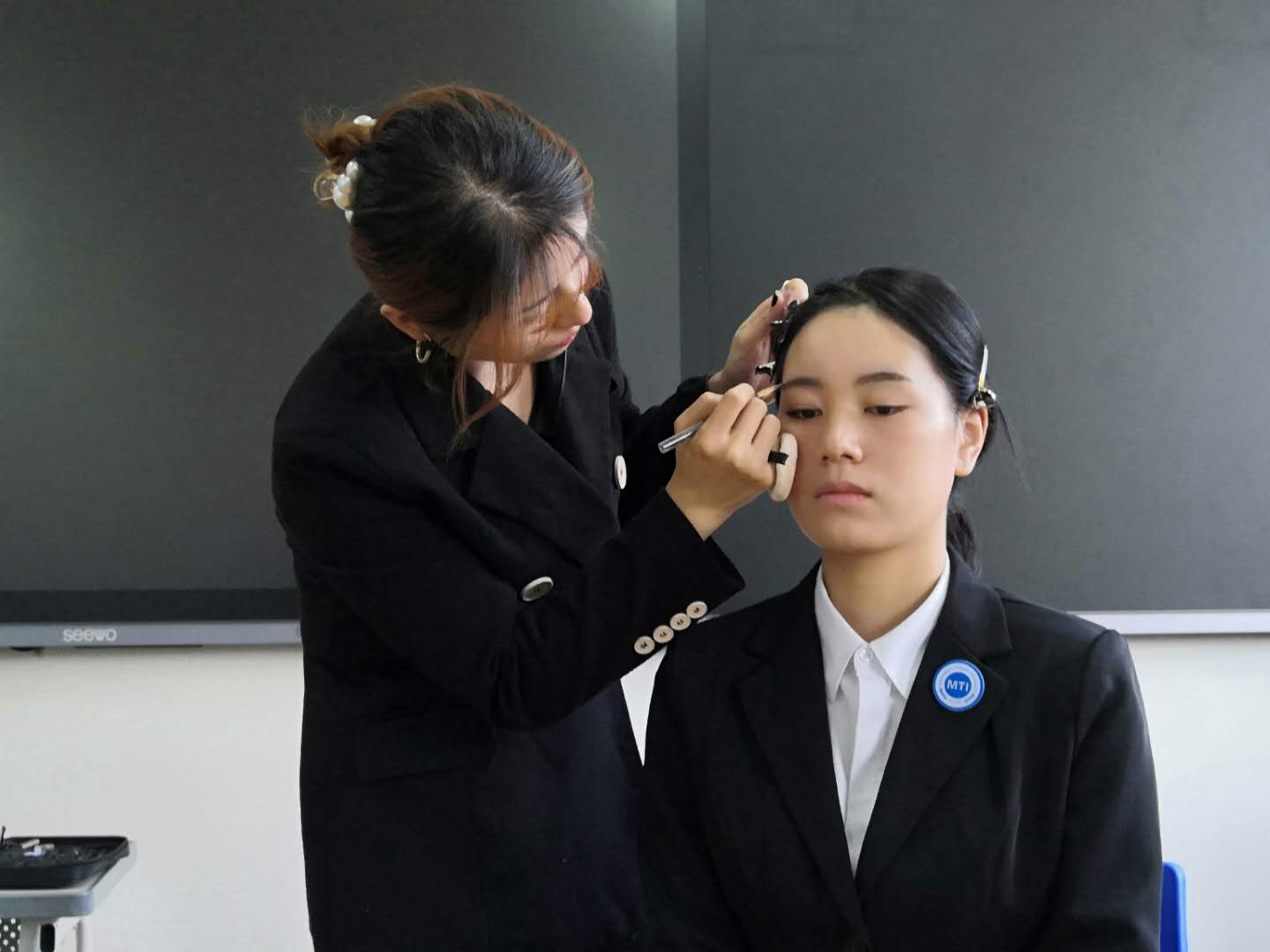 2020年10月21日上午,为了进一步提高翻译硕士(MTI)的仪容仪表和精神面貌,在未来的工作中更好地展现译者风采,我院特邀请专业礼仪培训师安夏颖老师在3号楼506教室为2020级翻译硕士讲解并示范如何化妆。