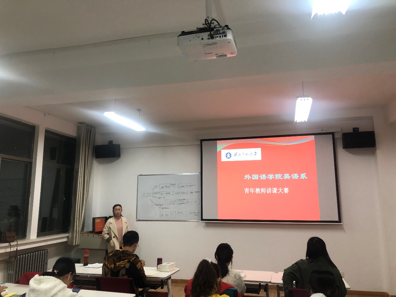 为深入学习贯彻习近平新时代中国特色社会主义思想,认真落实《中共中央国务院关于全面深化新时代教师队伍建设改革的意见》《中共甘肃省委甘肃省人民政府关于全面深化新时代教师队伍建设改革的实施意见》及全国全省教育大会精神,进一步弘扬学校优秀的教学传统和文化, 促进青年教师教学创新能力不断提高,推进信息技术与教学的深度融合,推动人工智能赋能教学改革,提升青年教师教学能力,努力打造一流的教师队伍,根据学校《关于举办第六届青年教师教学创新大赛的通知》英语系于11月11日在507教师工作坊举办了英语系青年教师教学创新大赛。王琦、白丽梅和黄彩霞三位老师担任此次比赛的评委,七位老师参加了比赛,经过激烈的角逐,陈倩、韩文菊、刘永娟和刘建桢四位老师以优异的表现胜出,将代表英语系参加院级比赛。