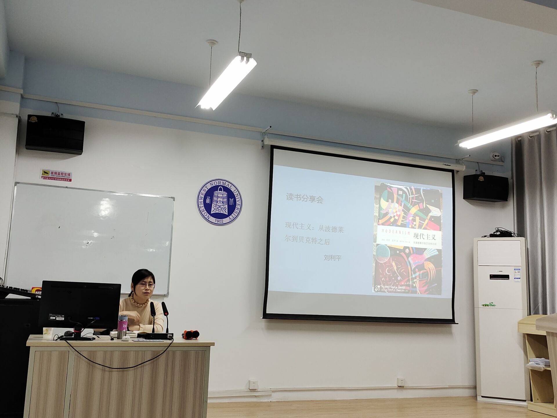 2020年11月10日晚19:30,yl6809永利在教学3号楼806室开展了“益”周读书会第二十七讲,本期主讲人英语系刘利平老师通过《现代主义:从波德莱尔到贝克特之后》这本书给同学们分享了现代主义艺术。读书会以“线上+线下”的方式举办,参加人数近100人。