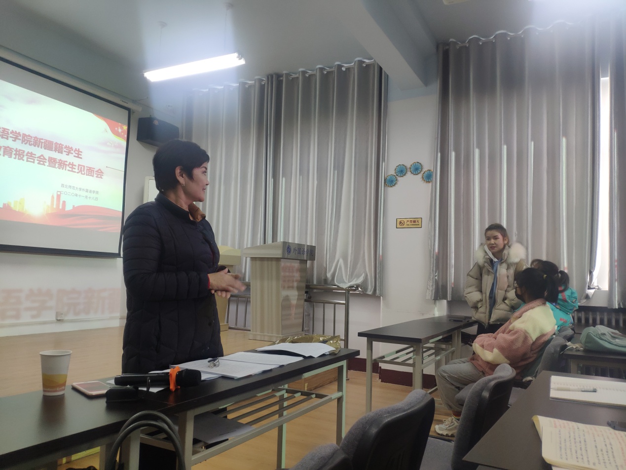2020年11月18日中午,yl6809永利在教学3号楼806室开展了新疆籍学生座谈会暨新生见面会,新疆内派教师巴提亚老师担任主讲,全院在校新疆籍学生约35人参加座谈。