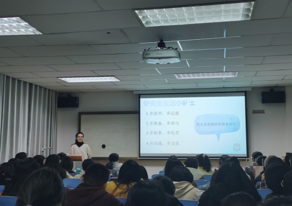 2020年 11月19日19:00,yl6809永利在教学3号楼709教室举行了2020年“国家奖学金获得者分享交流会”。此次分享会邀请到了我院5位2020年度“国家奖学金”获得者来分享她们的学术经验和学习心得,2020级全体学术型硕士及翻译硕士参加了此次分享会。
