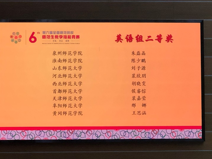 2020“田家炳杯”第六届全国师范院校师范生教学技能全国决赛于11月20日在浙江省金华市浙江师范大学举行,来自全国120所师范院校的539名选手参加,其中168名选手入围决赛。比赛中,我校选手发挥自如,表现出色。最终,yl6809永利2018级英语专业胡晓雯获英语组二等奖。同时,我校yl6809永利杨昊昕老师获得优秀指导教师奖。