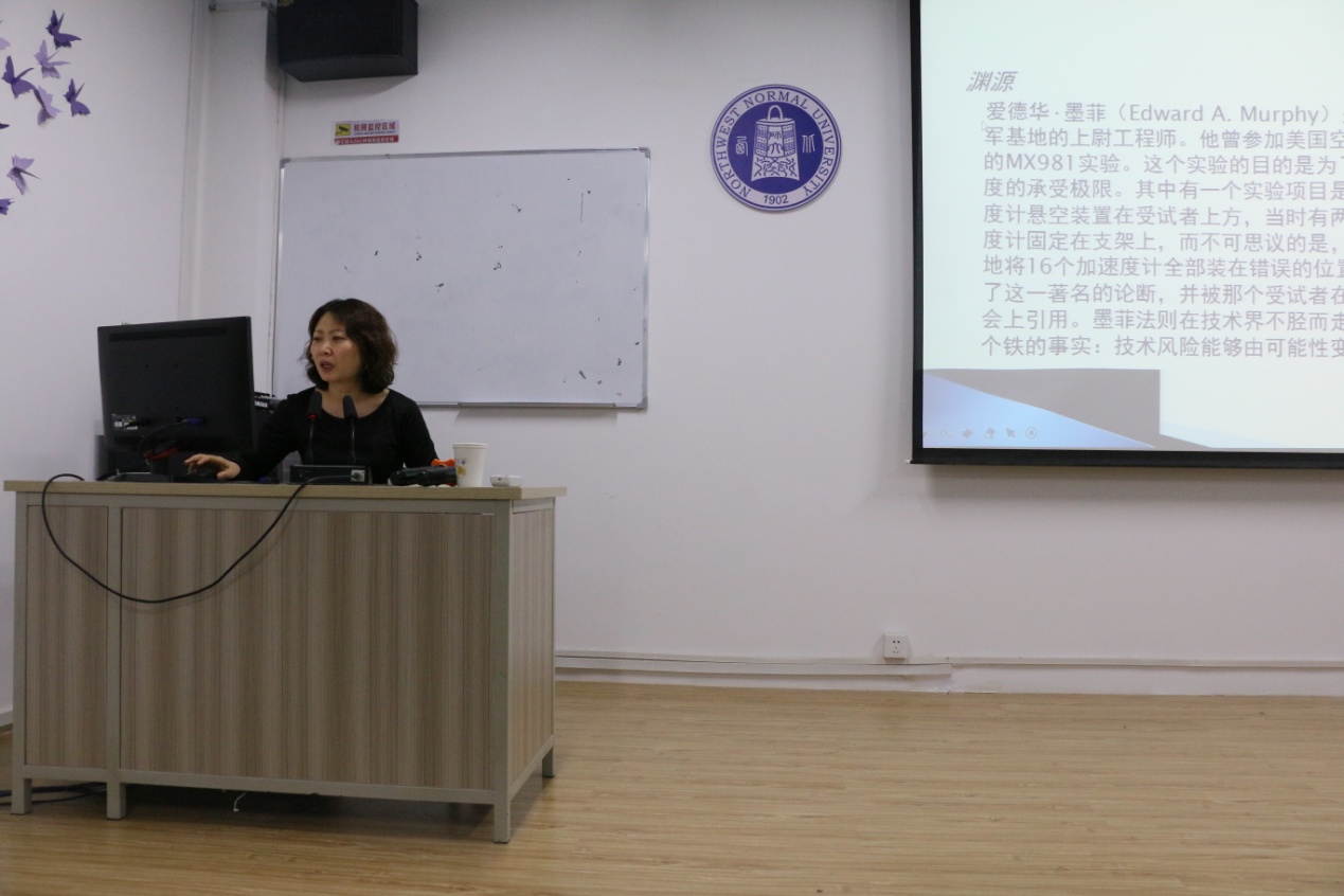 读书会伊始,薛老师以轻松简洁的形式向同学们展示“墨菲定律”的主要内容:如果事情有变坏的可能,不管这种可能性有多小,它总会发生。简而言之,就是越怕出事,越会出事。随后,薛老师就墨菲定律如何解释人生中的现象以及墨菲定律如何指导我们的学习、工作等进行了重点阐述。薛老师强调,人无完人,犯错是人之常情,当你狂妄自大时,“墨菲定律”会让你知道后果;反之,如果你能够承认自己的无知,“墨菲定律”会帮助你将事情做得更加严密。总之,我们必须学会接受错误,才能不断从错误中汲取成功的经验。