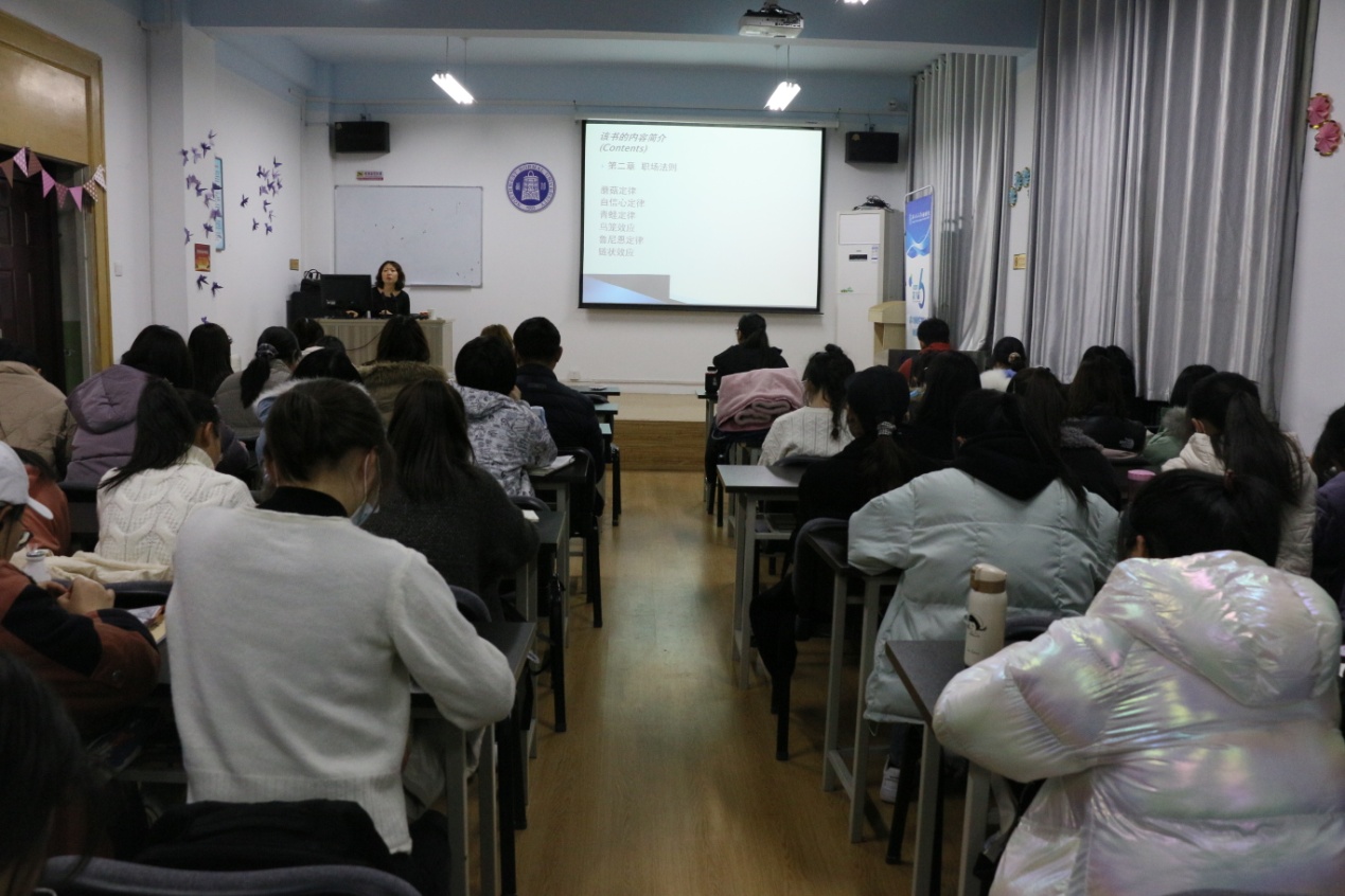 2020年11月26日晚19:30,“益周读书”系列读书会第二十九讲在我院教学三号楼806室如期举行。本次读书会采用“线上+线下”的方式,主题为“墨菲定律:与错误共生 迎接成功”,主讲人薛小梅副教授为同学们分享了《墨菲定律》,参与人数共计120余人。