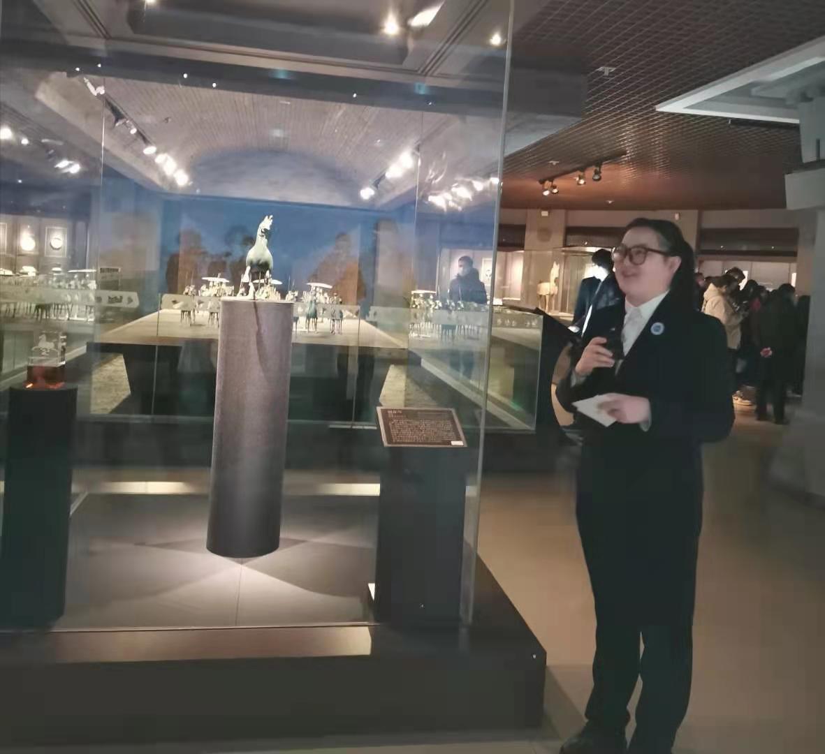 本次课外实践除了邀请馆内专业讲解员对丝绸之路展馆进行细致讲解外,学生各小组代表还用“英文讲解”的形式对小组课前学习成果在博物馆相关展区进行了汇报展示。