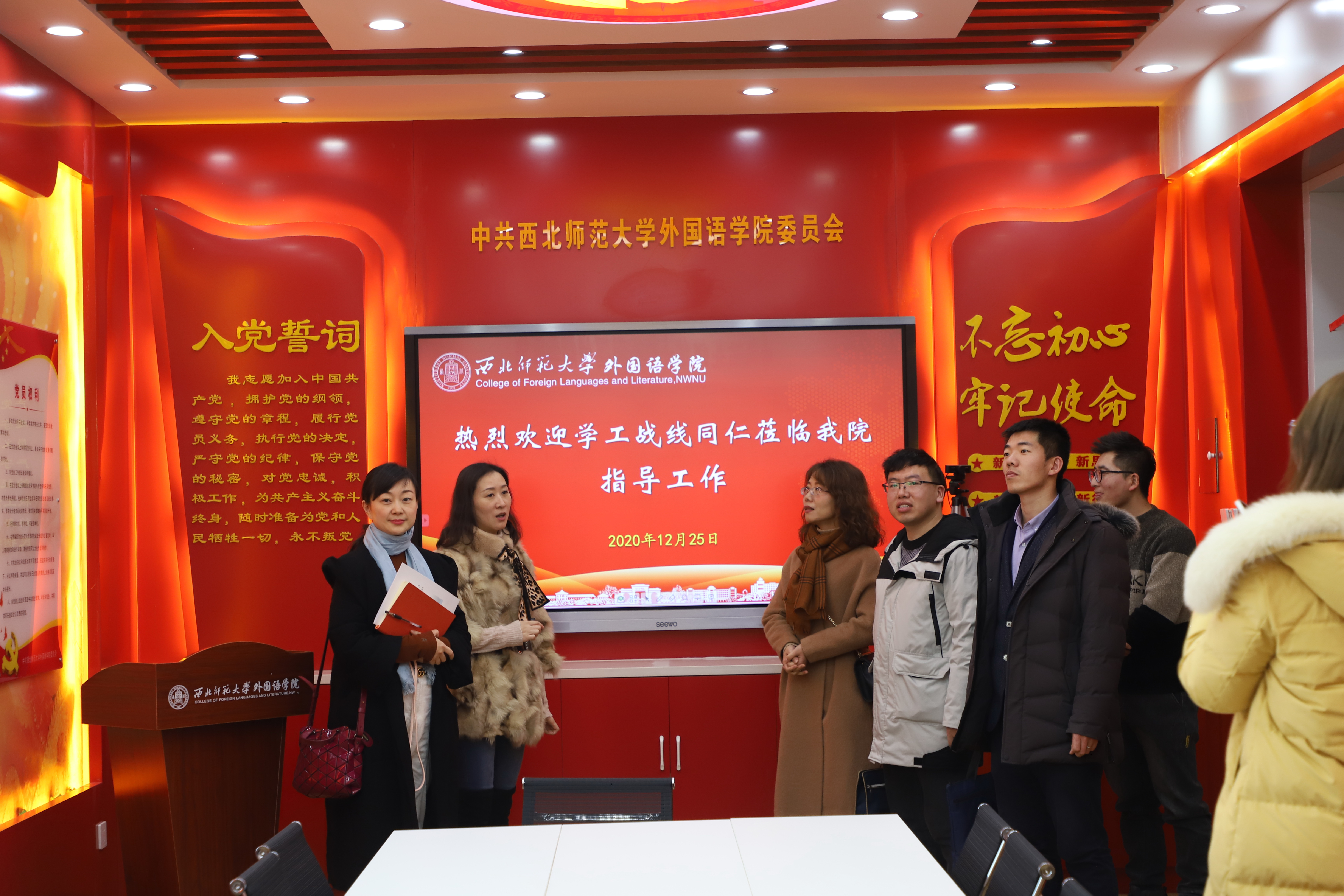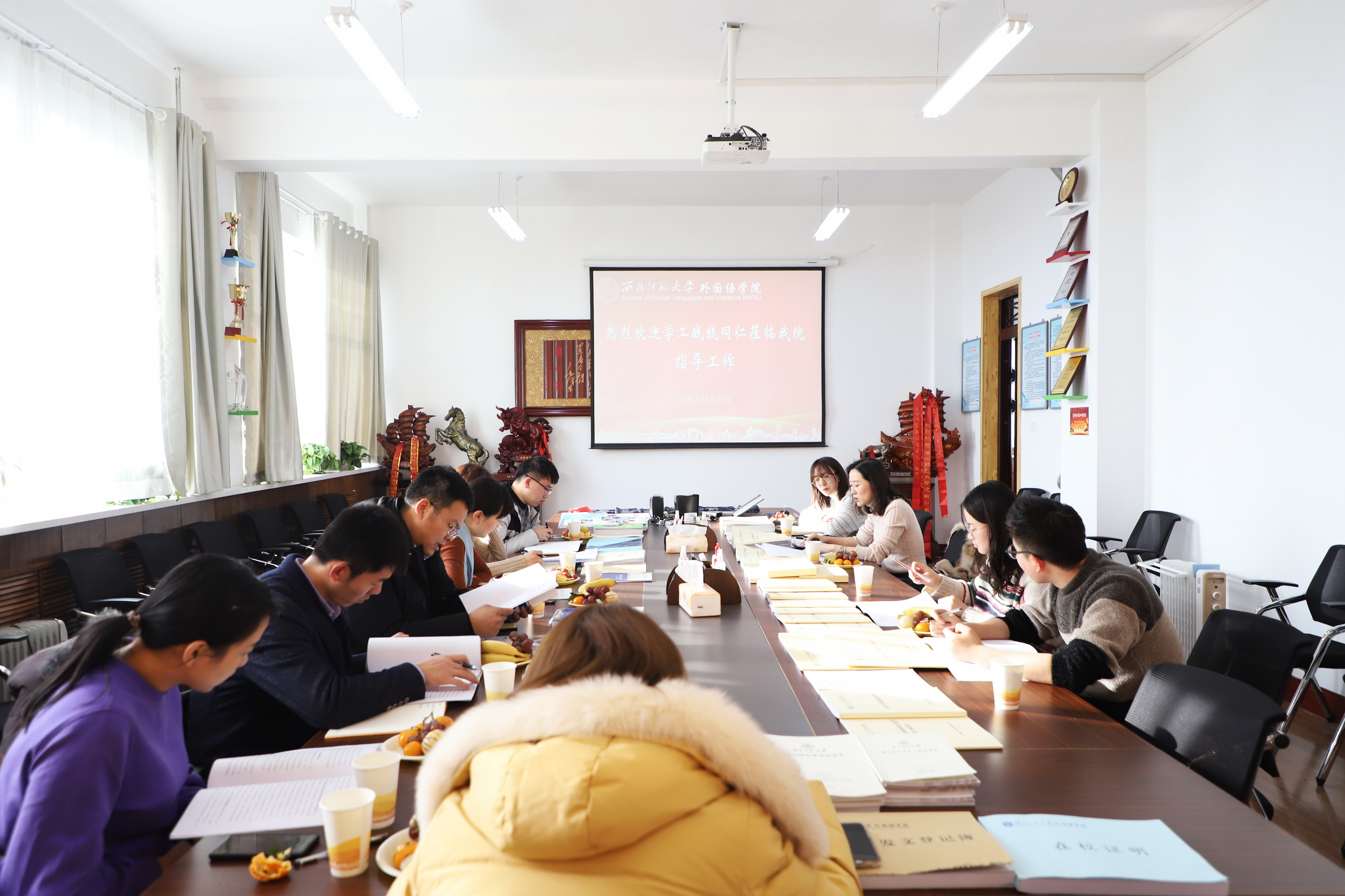 12月25日下午,由西北师范大学党委学生工作部祖木热提·阿山,历史文化学院党委副书记柴蓉、辅导员王浩,传媒学院党委副书记甘雯、辅导员付枭雄,教育学院党委副书记孙宏发、辅导员文桃组成的学生工作考核第5小组莅临我院开展2020年学生工作考核相关工作。yl6809永利院长曹进、党委副书记朱晓娟及专职辅导员参加本次工作考核专项会议。