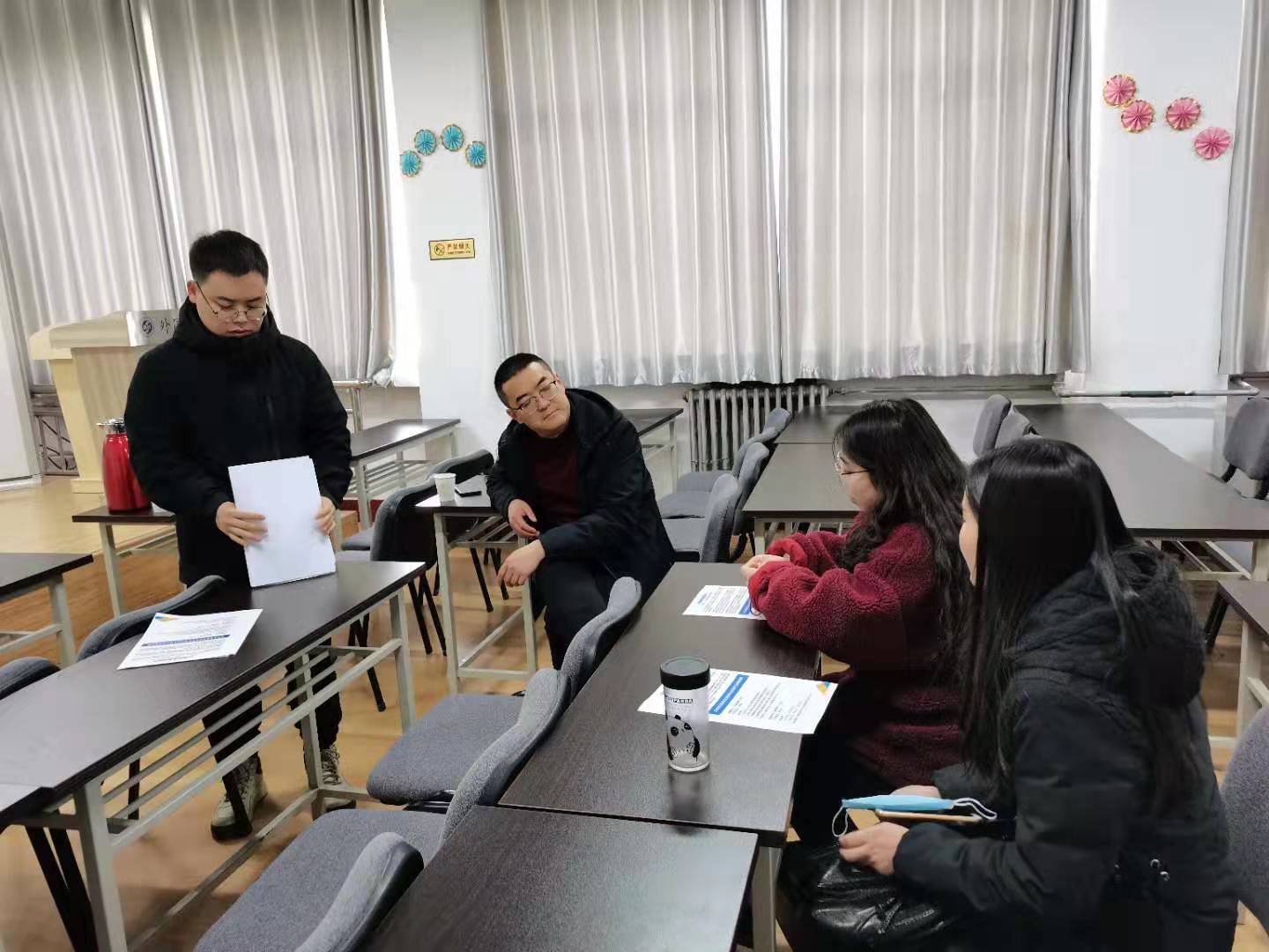 雷老师从天童美语旗舰校的环境、师资队伍、专业设置、发展机遇等方面详细介绍了该校的发展概况,随后,雷老师从住宿条件、社会保障等方面向参加学生介绍了该校职工的优厚待遇,最后,雷老师逐一向学生发放了该校的招聘简介,并对有应聘意向的学生进行了现场考察、交流。