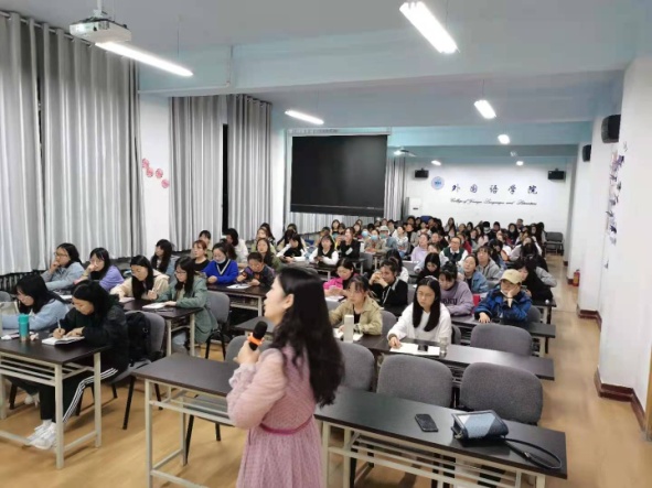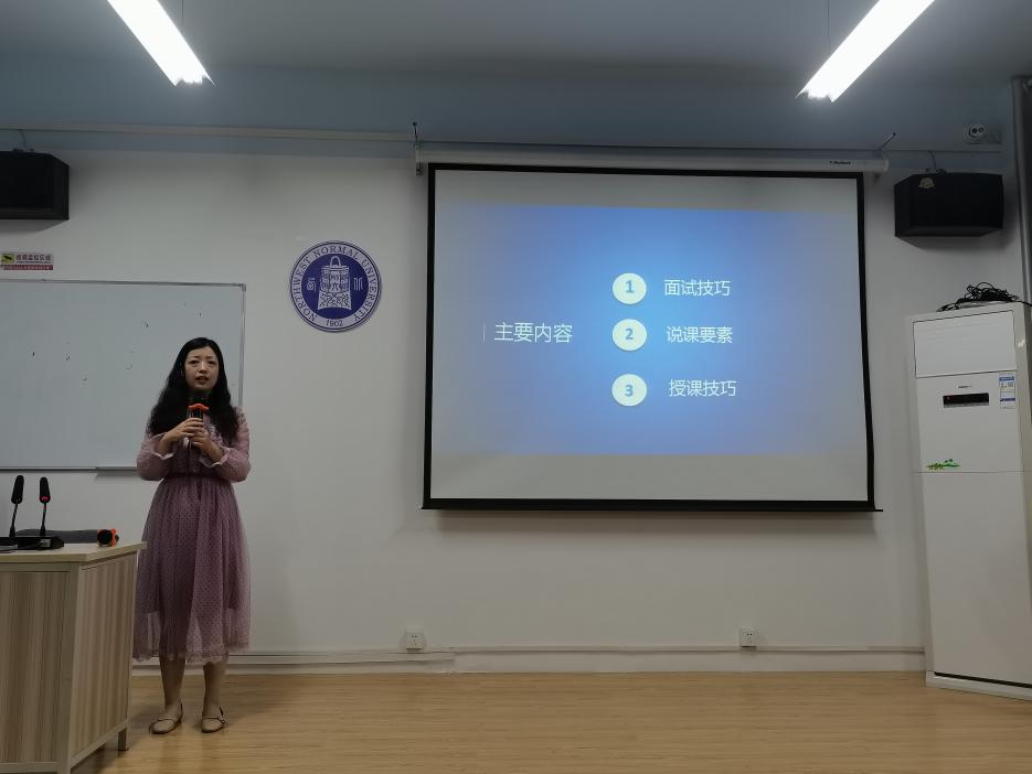 为进一步提升我院2021届毕业生就业能力,3月15日晚19:30,梁海英老师在教学3号楼806室为2021届毕业生作了说课与授课面试专题讲座,辅导员杨帆老师和2021届毕业生参加了此次讲座。