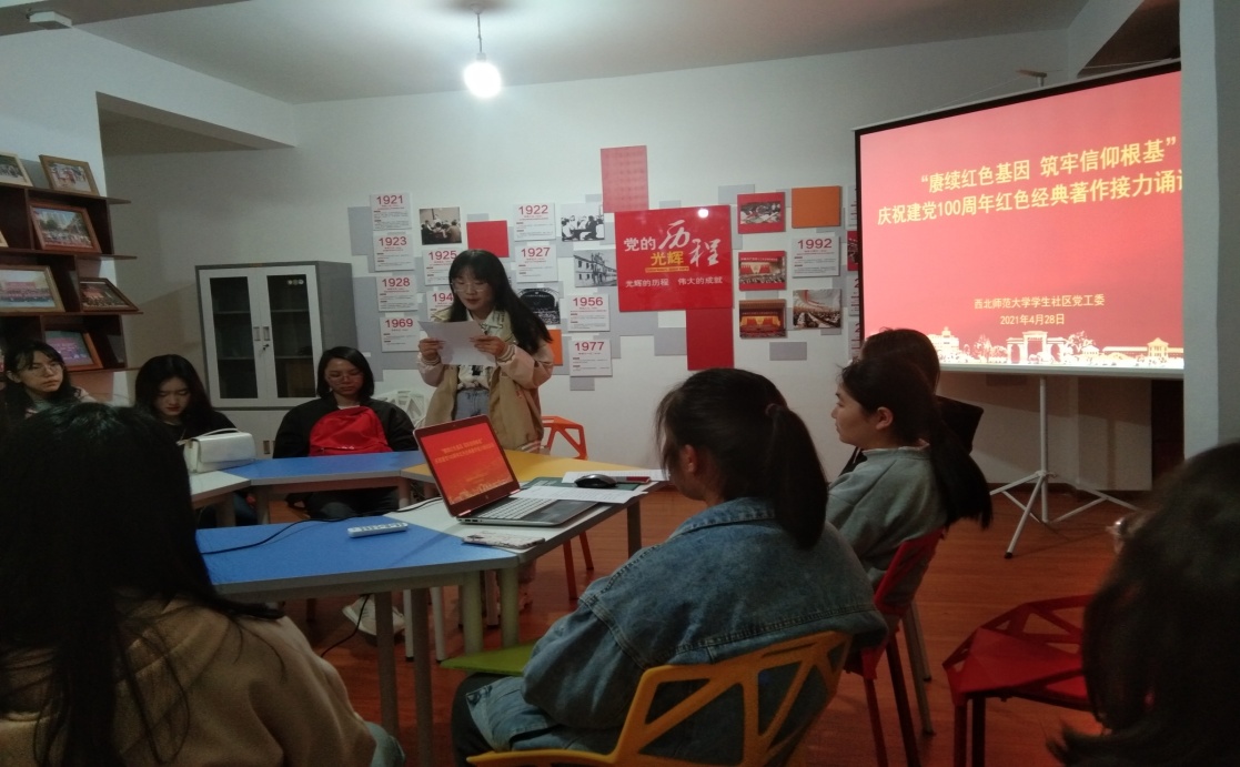 诵读红色经典,传承红色基因。4月28日晚8:00,yl6809永利组织社区党支部20余名同学,包括党员、党员发展对象及入党积极分子代表,共聚兰天学生公寓8号楼205党员活动室,进行红色经典著作接力诵读活动。