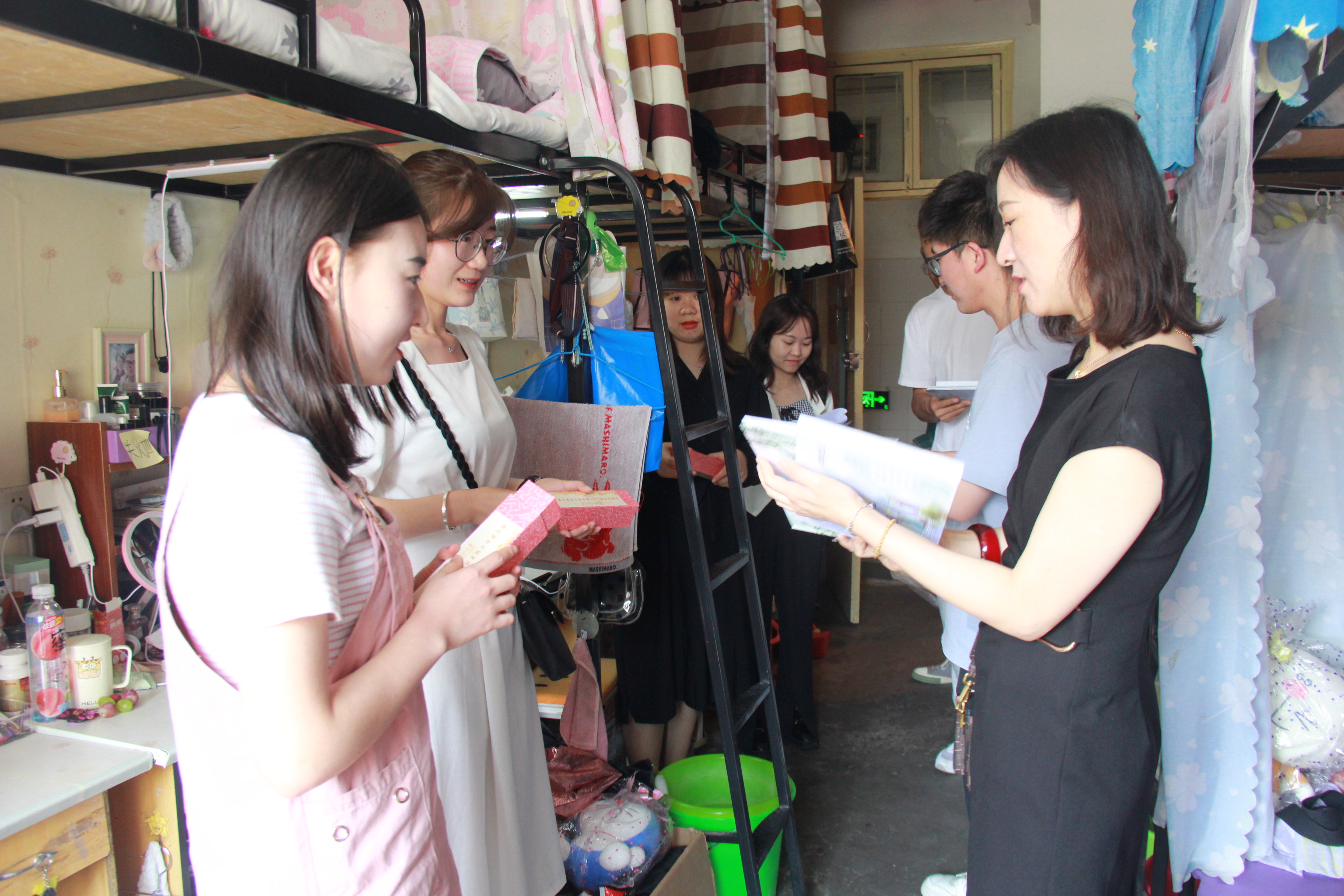 2021年6月23日上午,yl6809永利领导、辅导员老师带领学生干部走访毕业生宿舍,送礼惜别2021届毕业生。