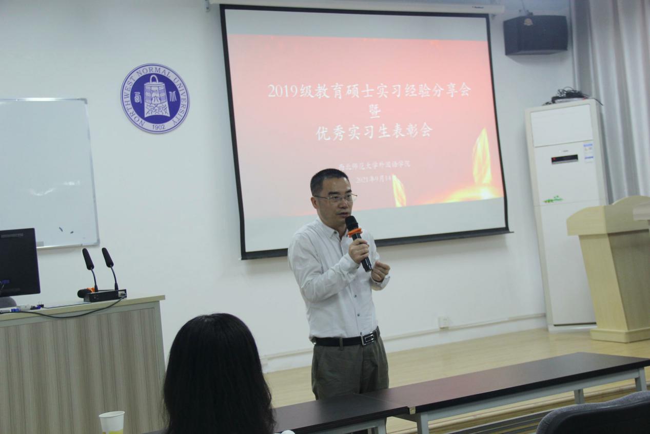首先,王景书记肯定了学院教育硕士在专业实践环节的投入和成绩,并表示,教育硕士应传承优良传统、发扬无私奉献精神、担负教书育人重任,教育实习是检验教育教学成果的重要形式,更是研究生与教育生涯接轨的第一步。同学们应在教育实习的基础上,不断反思、总结,为今后的教师生涯打下坚实基础!