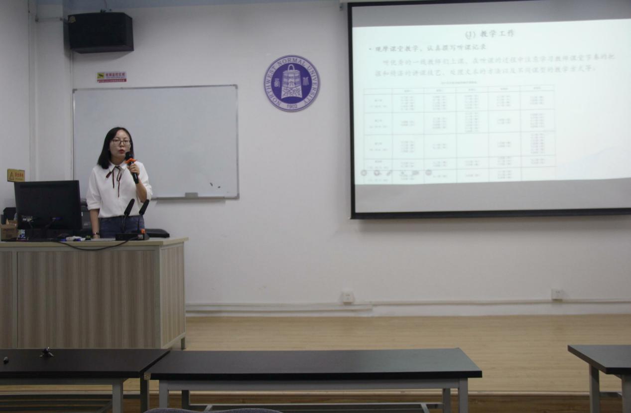 随后,优秀实习生代表赵晗、吴磊磊、金霞、李春燕四位同学重温实习生活过往,从教学工作、教育科研、班主任工作等方面分享实习的收获与成长,从在校学生到实习教师,实习生们在实习单位里塑造着属于自己的角色;从挑战尝试到责任担当,实习生们书写着属于自己的成长故事。