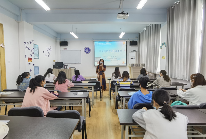 9月16日上午,yl6809永利在3号教学楼806室举行了2021级新生理想信念、遵纪守法主题教育活动。活动采取线上线下相结合的方式。学院党委书记王景、党委副书记朱晓娟分别做了主题教育报告。