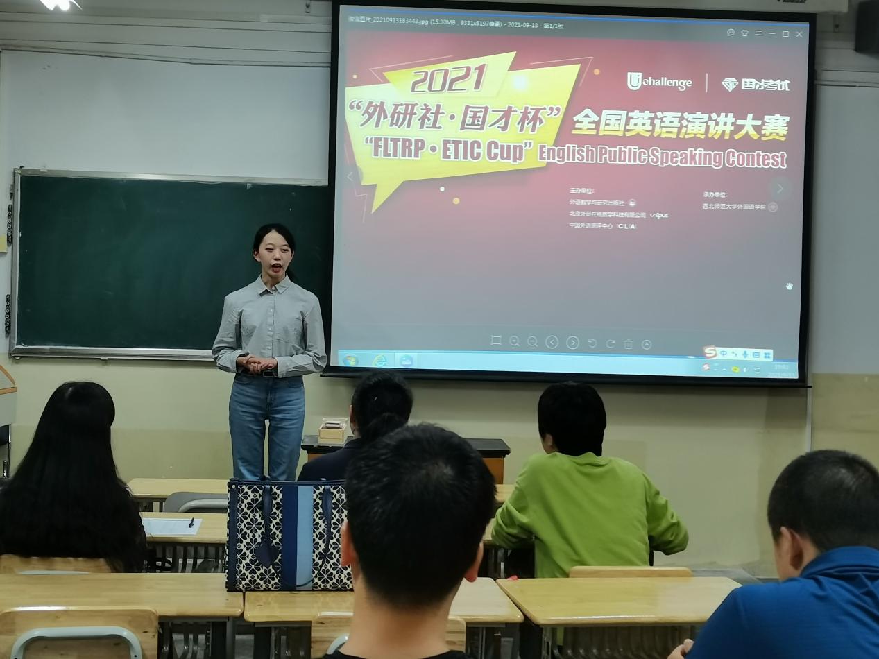 9月13日至15日,由外语教学与研究出版社主办、西北师范大学教务处与yl6809永利承办的“外研社•国才杯”全国英语演讲写作阅读大赛初赛在教学三号楼正式拉开帷幕,来自全校十余个学院的数百名同学参加了本次大赛。