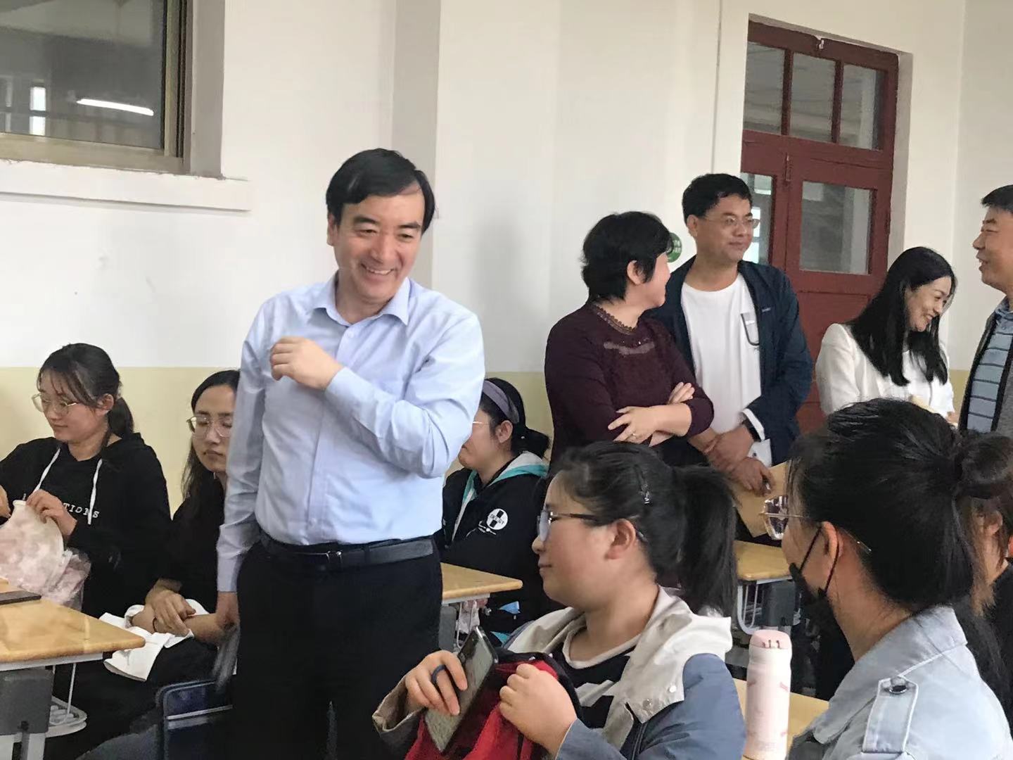 9月29日上午,田澍副校长来我院检查和督导教学工作,学校教务处王兴副处长和我院领导班子成员陪同。田校长全面检查了教学3号楼各教室的上课情况,并从中随机选了一堂我院英语系老师的专业课程听课,课后田澍副校长与现场师生进行了亲切的交流互动。