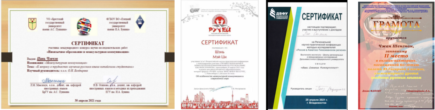 上述活动受到来自卡尔梅克孔子学院,叶列茨基国立大学外语教研室、布列斯特国立大学外语教研室、远东联邦大学东方研究院的大力支持,活动参与者来自世界各地的数百名本科生和研究生组成。此次系列活动以学术演讲、文化竞赛、才艺展现为主要形式,侧重针对俄语非母语者语言学习中存在问题的关注,对跨文化交际实践中文化现象的讨论,亦涉及到国别区域研究的相关知识。活动旨在培养学生在语言学习、文化了解、科研探索等方面的兴趣,夯实语言基础,拓展语言应用能力。同时,在为增强学生知识获取的主动性,提高学生独立思考、辩证思考的能力,提升其实践创造力等方面起到推动作用。俄语系学生刘骥如、刘雪莉、贾梦阳、党佳佳、肖息露、邓佳佳、何雨雨、孔娟、王李悦、沈美琪、张胜男、郭思怡、秦成成、刘佳慧、李佳鹏、李亚明、安雪莲等学生积极参与并取得了优异成绩。