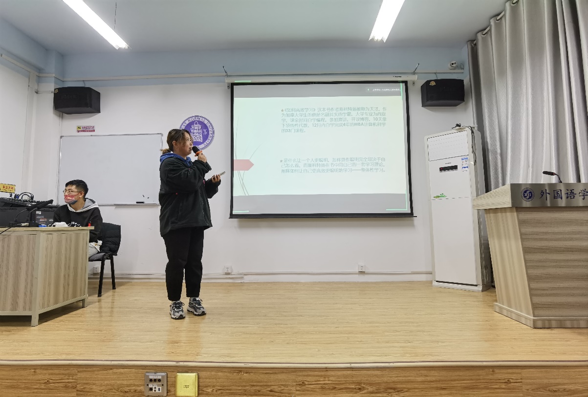分享会第一环节,班级代表分别对推荐图书《如何高效学习》做了读后分享,代表们通过讲述作者生平,同时结合自身学习生活经历对图书内容进行了深入的总结剖析,随后吕院长结合同学们的读书感悟,总结到在如今的信息化时代,作为青年一代首先要意识到信息传播的重要性,要不断拓展信息的有效性,连接已知和未知。要在学习中给自己设立明确的目标。用斯科特·扬的“整体性”学习方法,在学习进程中不断总结,不断前行,不断进步。
