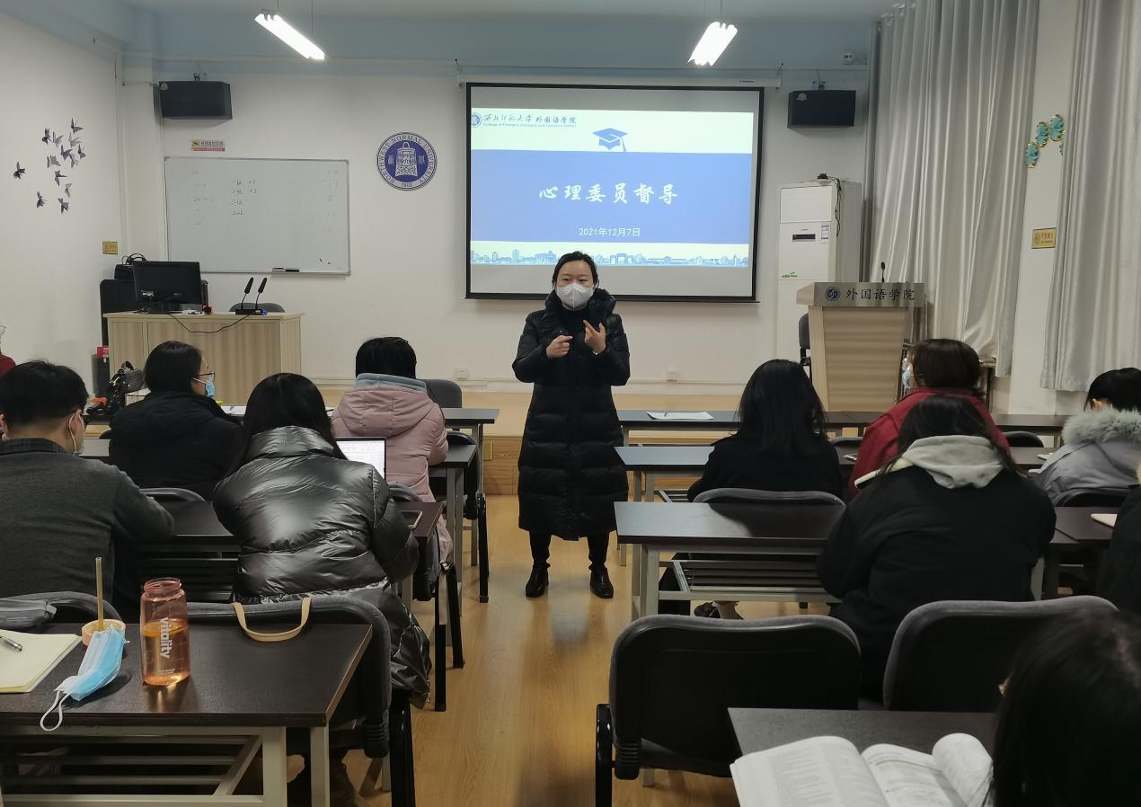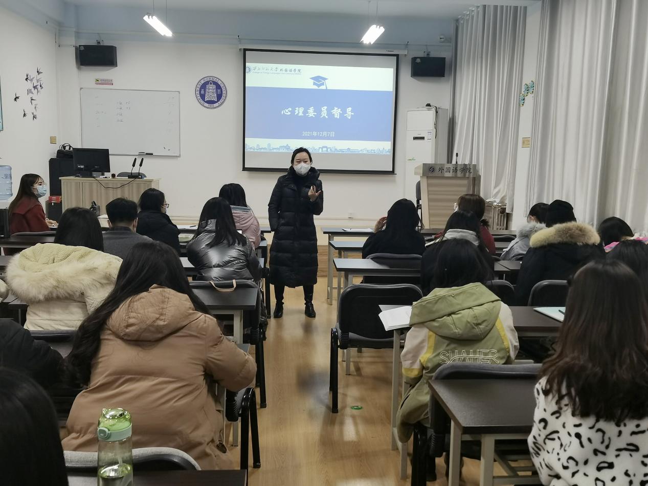 为了进一步加强大学生心理健康教育工作,提高班级心理委员工作能力,2021年12月7日中午,西北师范大学学生心理健康指导服务中心徐伊文婕老师在教学3号楼806室开展心理委员专题培训。