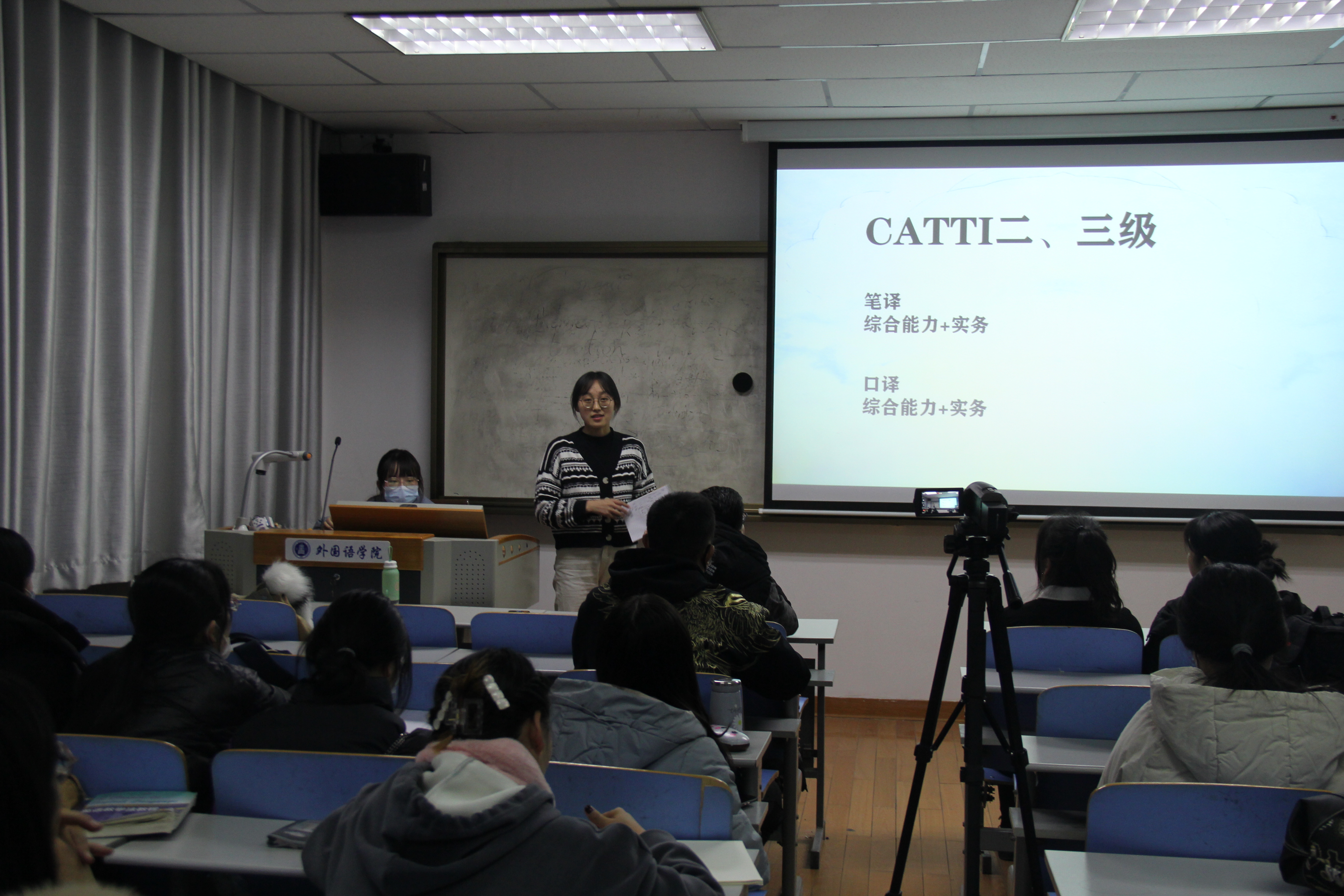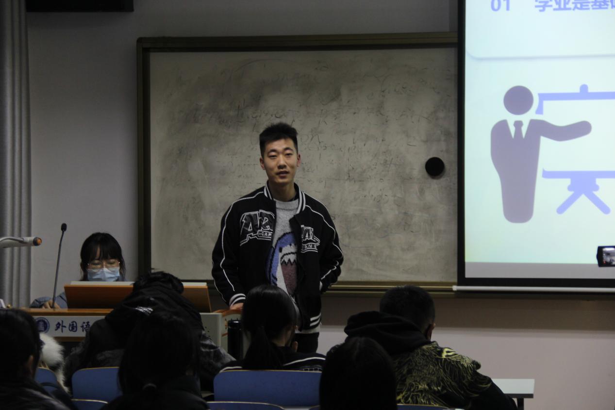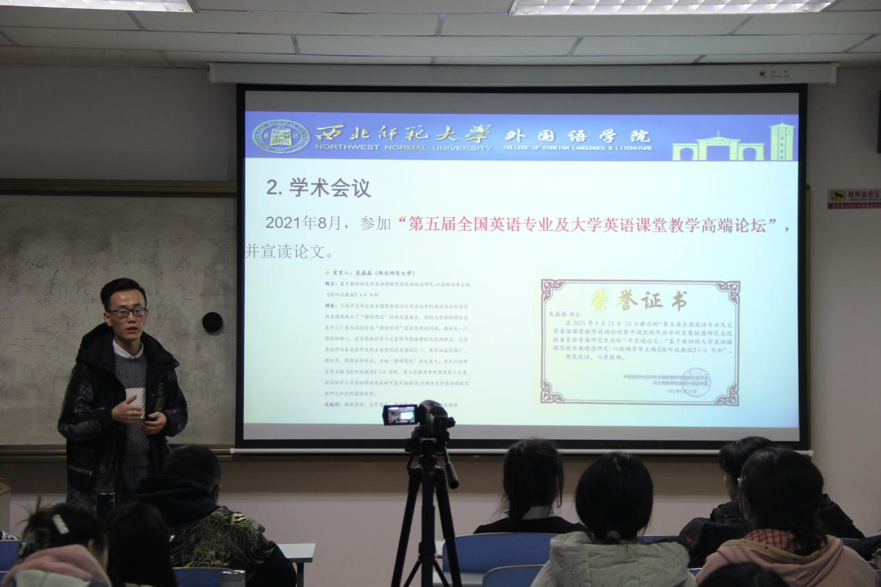分享过程中,吴磊磊、谈丽娟、王亚宁三位获奖者依次进行了分享。吴磊磊同学从学术科研、专业实践、综合表现三个部分分享了自己的经历,鼓励同学们在积极申报各类科研、实践项目的同时,也要活跃于各类社会、学校、班团的活动中。谈丽娟同学主要分享了备考CATTI口笔译以及备战专业比赛的相关经验,并从自己的实际经验出发,推荐了高质量的英语学习公众号和软件。王亚宁同学从学业、科研、专业竞赛以及综合表现四个方面出发,强调了积极与导师沟通以及平衡学习和工作的重要性。最后,在场同学向三位获奖者提出了学习、科研方面的问题,三位获奖者一一作了详细地解答。