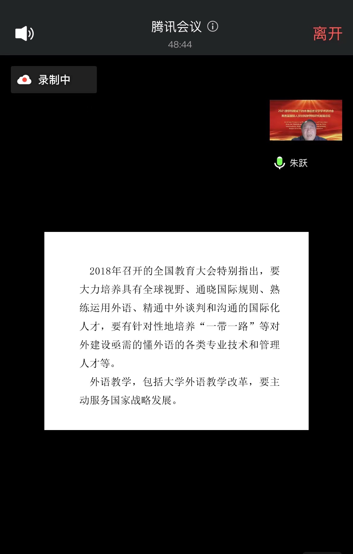 12月19日晚,安徽大学yl6809永利朱跃教授应学院邀请,通过腾讯会议,为我院教师做了题为“外语学科国家社科项目申报”的在线讲座。朱跃教授为教育部高等学校审核评估专家、国家社科基金通讯评审专家。先后在外语类核心期刊上发表论文几十余篇,出版论著、教材、译著多部。2019年,主持经典中国国际出版工程项目《中国古代四大发明》翻译,在英国珀斯出版社出版,并获输出版优秀图书奖。朱教授围绕外语学科的国家社科项目申报做了高质量的解说,在如何选题、如何论证才能服务国家战略发展等内容上做了重点讲解。为广大教师申报国家社科项目提供了非常有益的指导。本场讲座是我院为提升外语学科高层次课题申报质量、提高课题立项率而开展的系列活动中的第四场讲座,由副院长俞婷教授主持,120余名教师在线收听了讲座,最后俞院长做了精彩的总结发言,感谢朱跃教授给大家带来如此充实的讲座内容,鼓励老师们注重长期的学术积累,提升科研意识,抓紧为申报课题做准备。